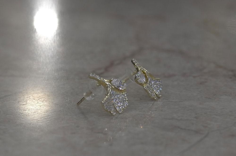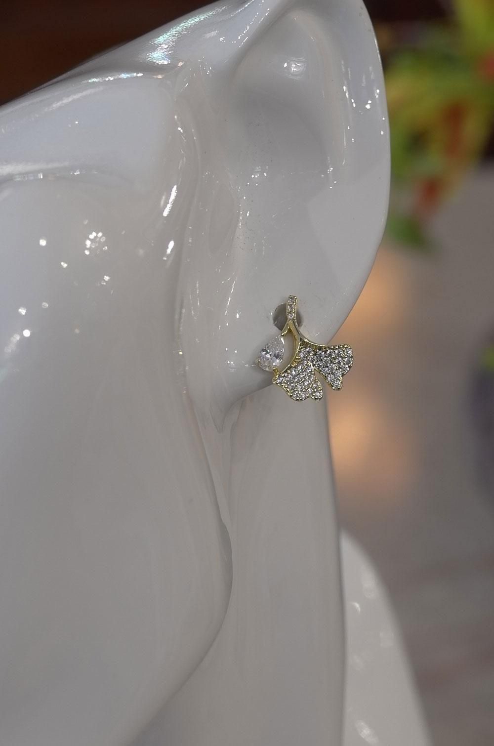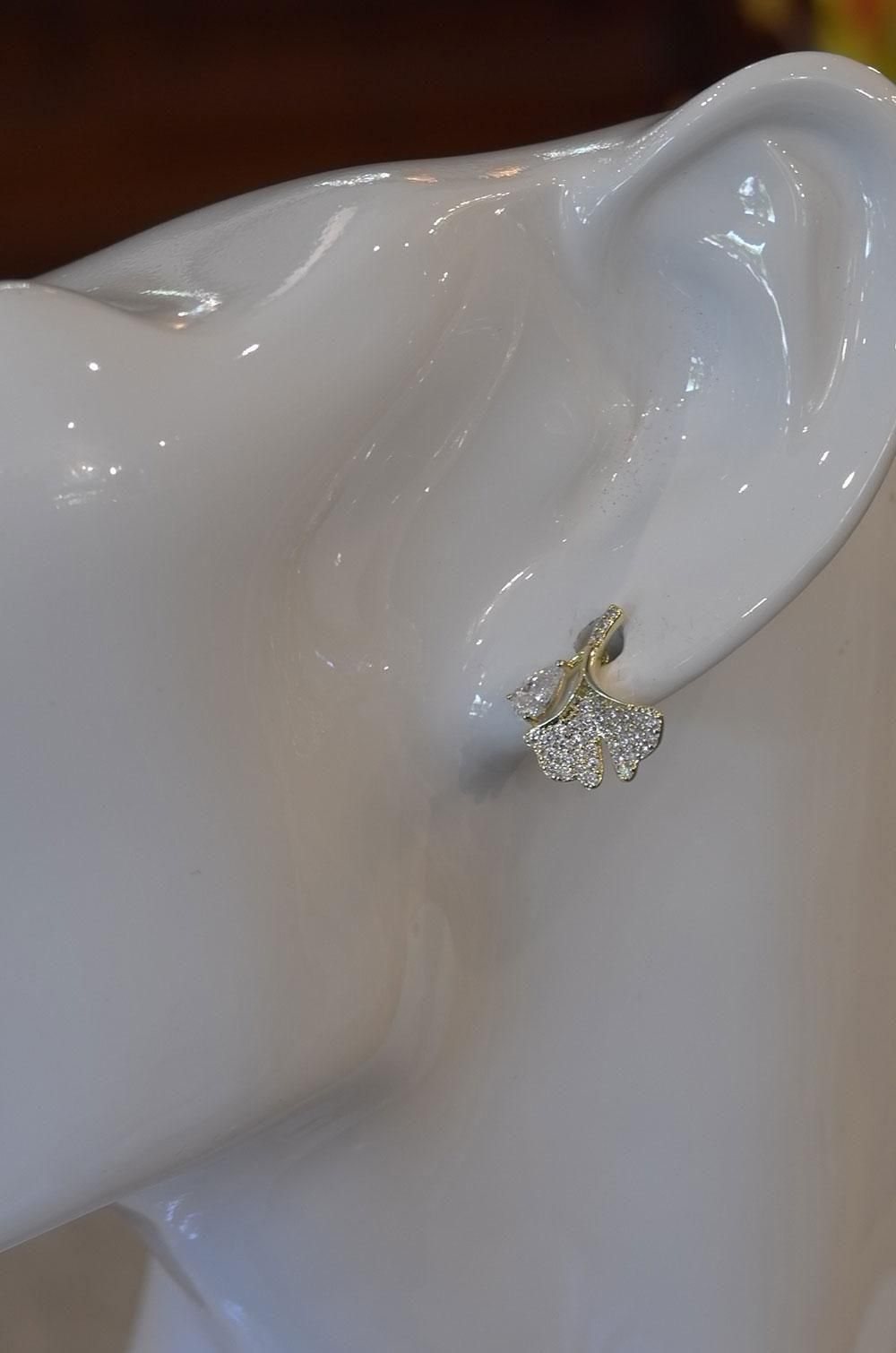 【フランス新品アクセサリーレディース】ピアス キラキラいちょう葉リーフ イチョウ銀杏 金 スタッド ファッション パリ