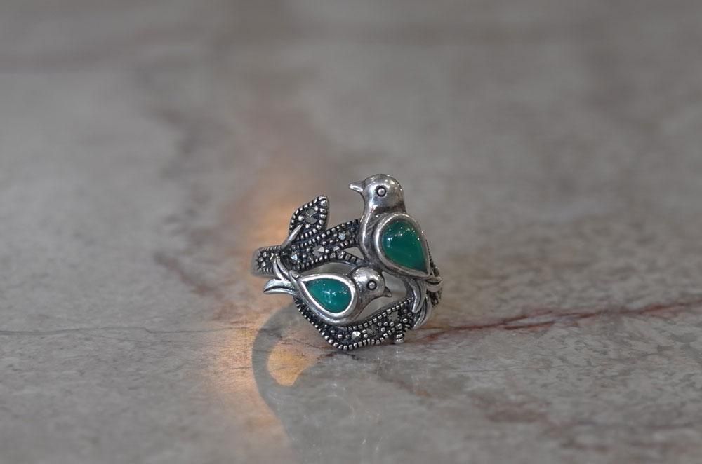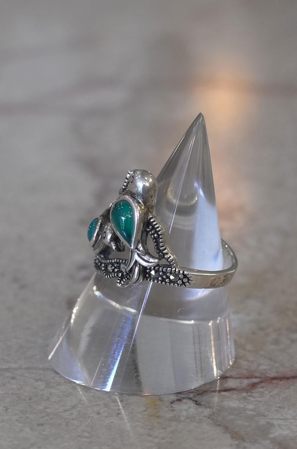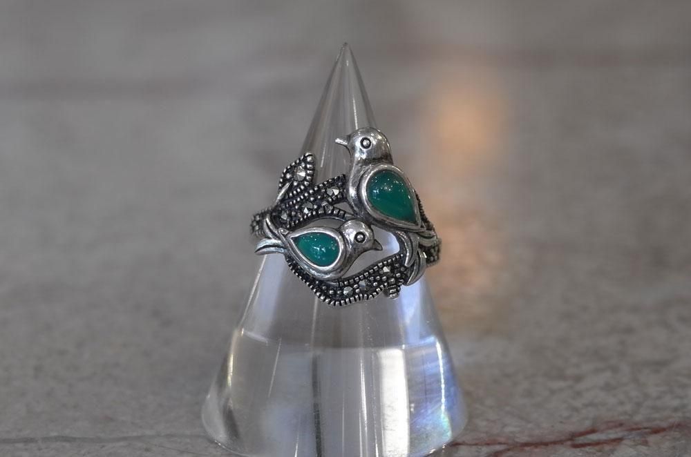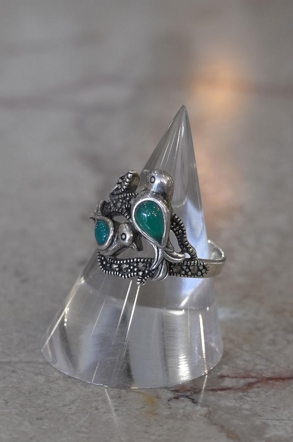 【フランスヴィンテージアクセサリーレディース】指輪 リング 鳥バード 緑天然石 銀シルバー925 パリ