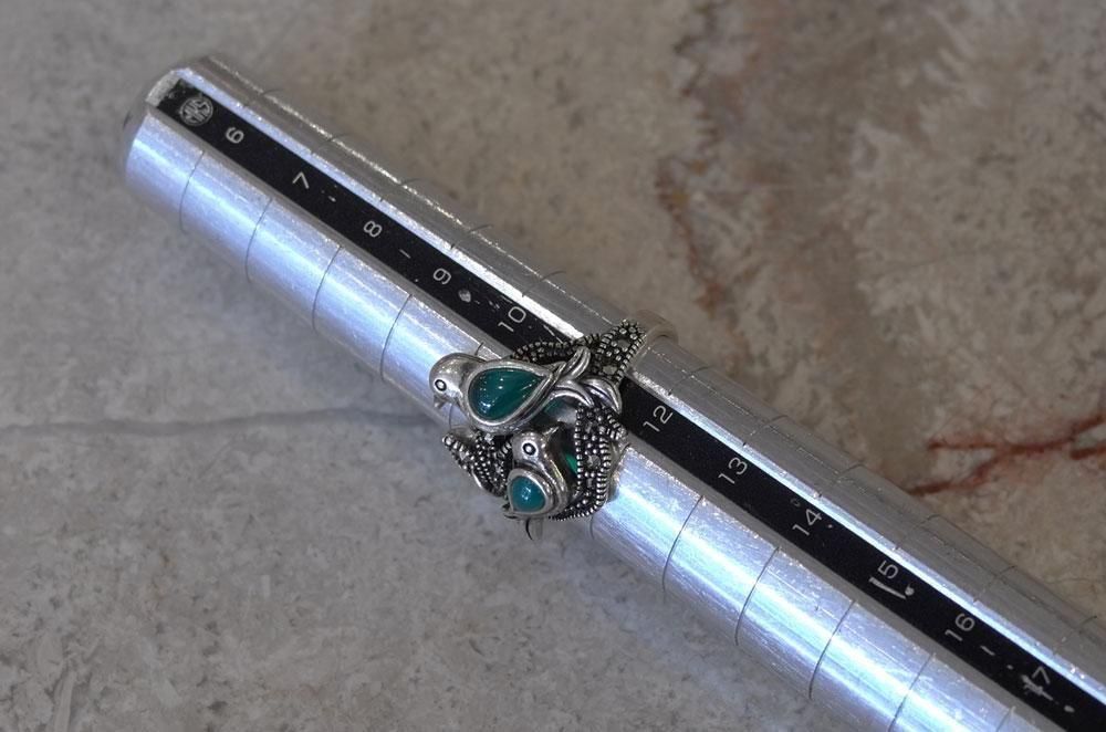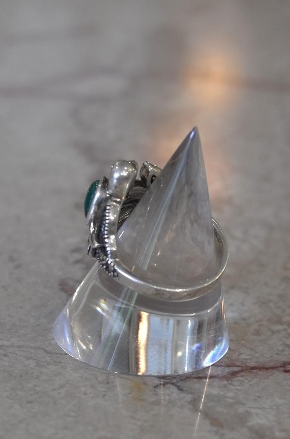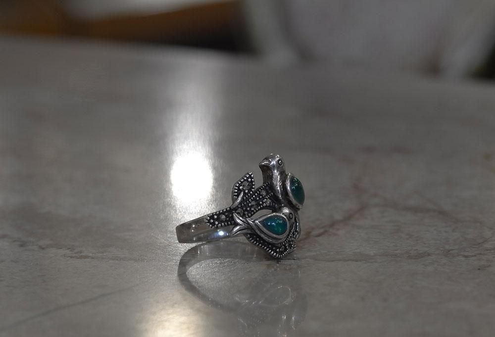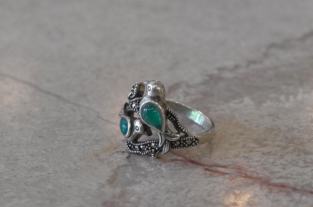 【フランスヴィンテージアクセサリーレディース】指輪 リング 鳥バード 緑天然石 銀シルバー925 パリ