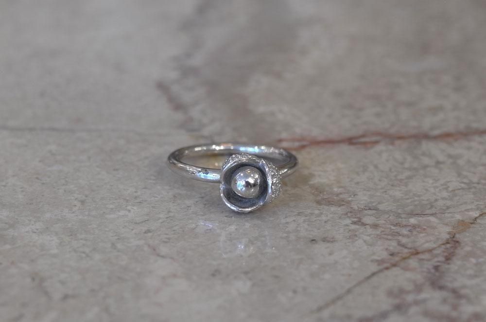 【フランスヴィンテージアクセサリーレディース】指輪 リング 面高オモダカ 花フラワー 銀シルバー925 フランス作家 一点もの モダン パリ