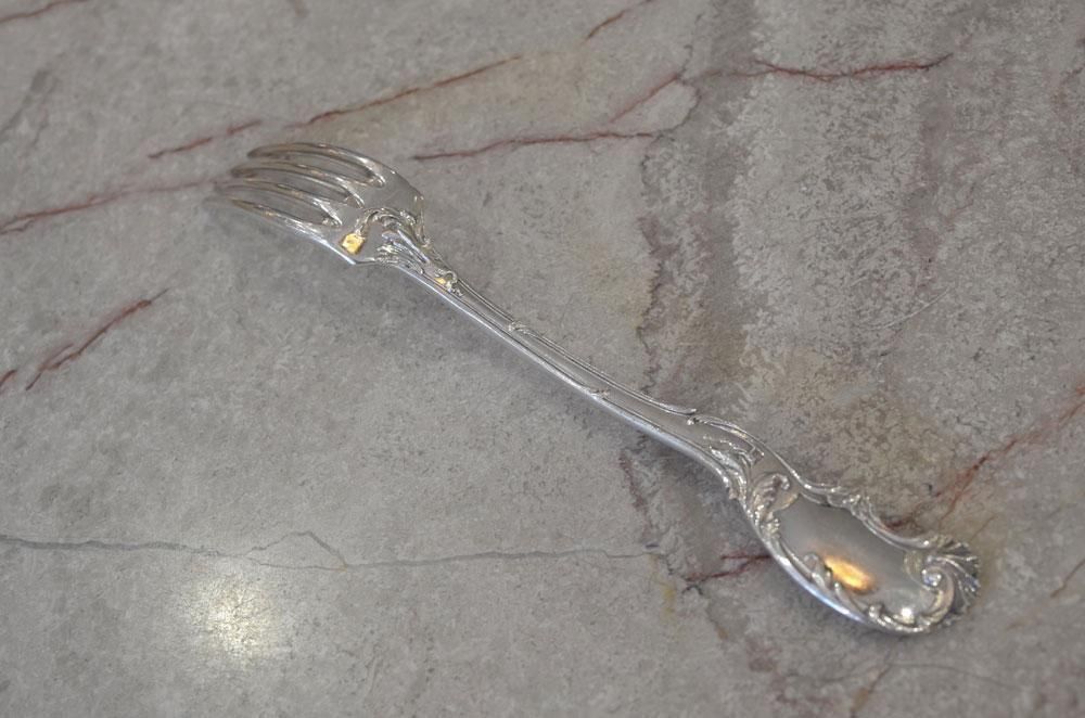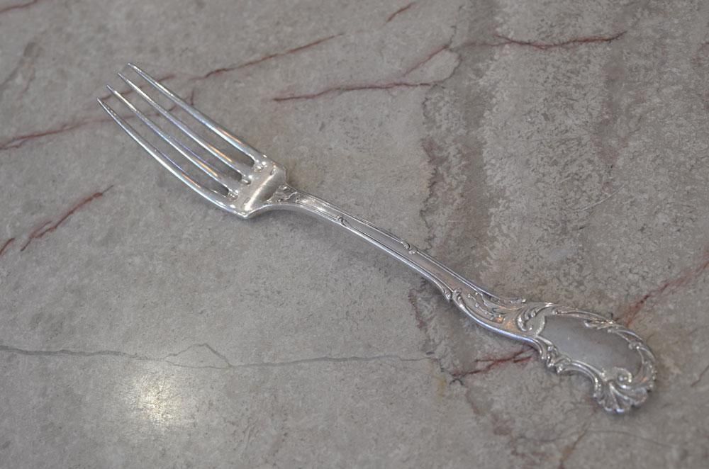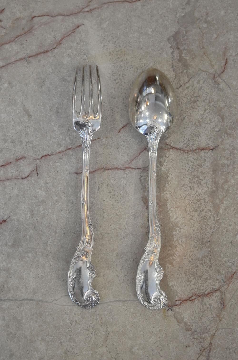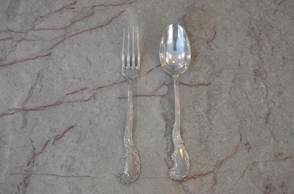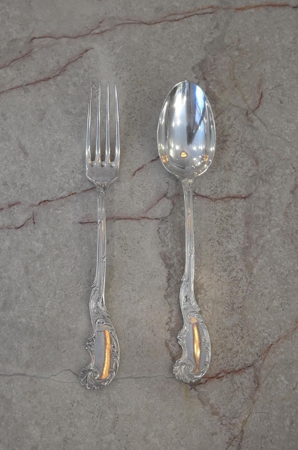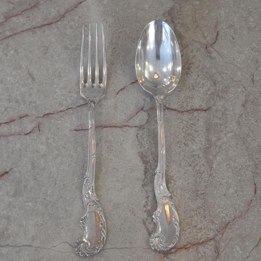 【フランスアンティーク雑貨】ディナーフォーク&ディナースプーン カトラリー テーブルウエア 純銀プレート 15世紀様式ロココ様式 ロカイユ装飾貝殻文様 インテリア パリ