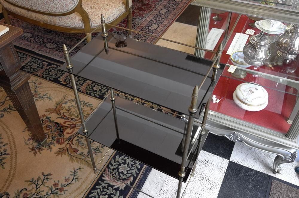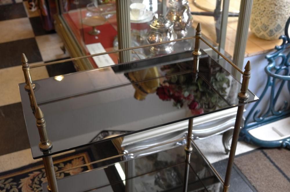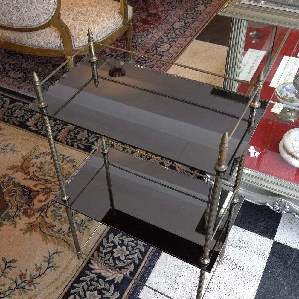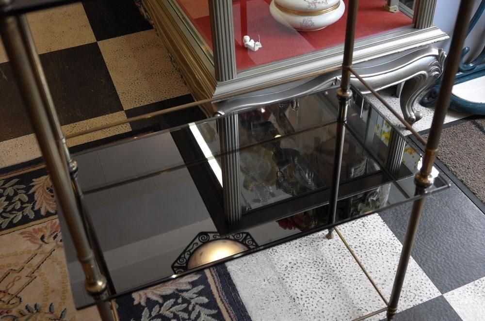 【フランスヴィンテージ家具】飾りガラス棚 ガラスケース シェルフ 黒ガラス鏡 真鍮合金 金ゴールド 1960年代 インテリア パリ