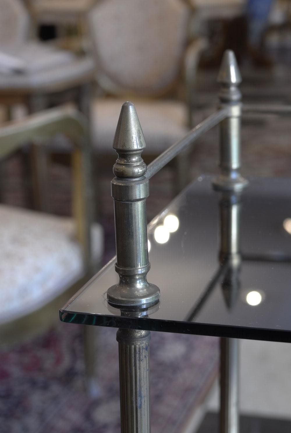 銀のごとくしっとり輝くブラック・ミラーとシャープな佇まいの真鍮合金製の脚。