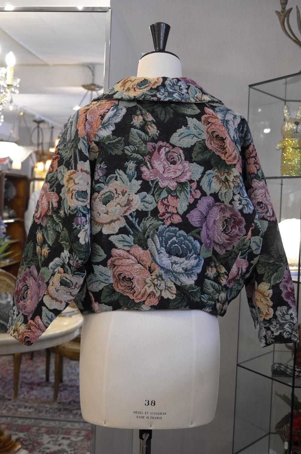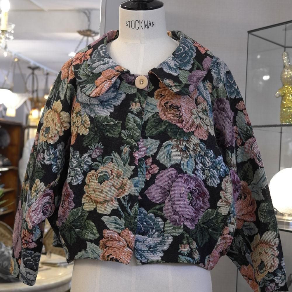 【フランス新品ファッションレディース】ブルゾンジャケットコートアウター ゴブラン織り 花フラワー柄 丸襟 フレンチデザイナー モード パリ