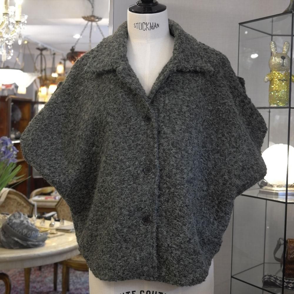 【フランス新品ファッションレディース】ブルゾンジャケットコートアウター 半袖ベスト 緑カーキやわらか起毛加工 モード パリ