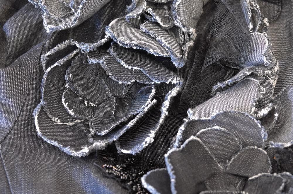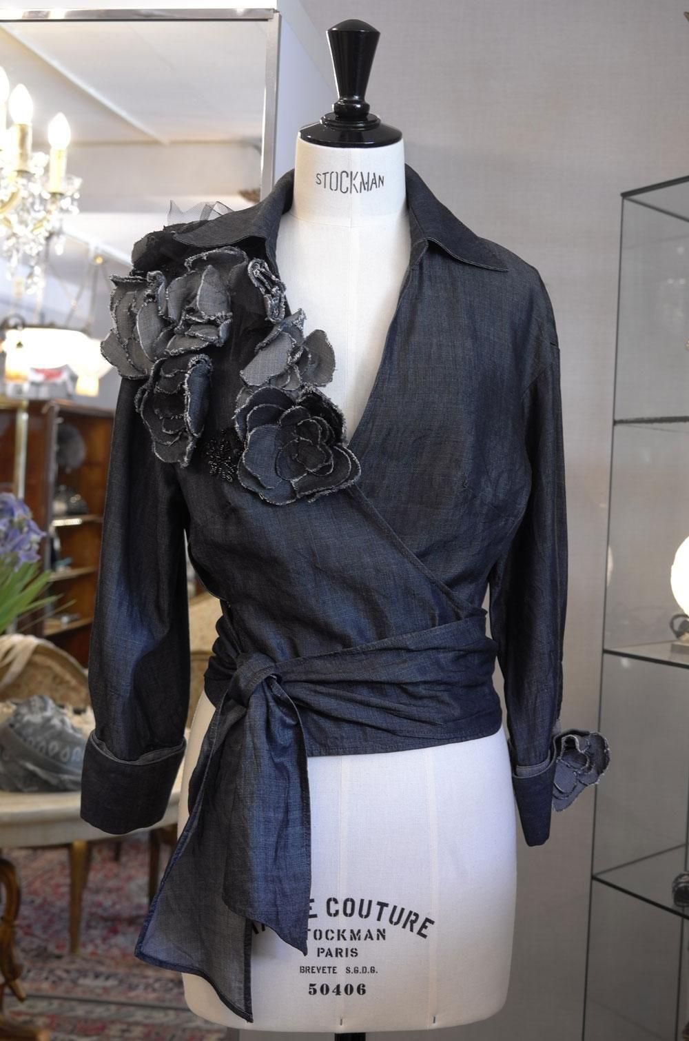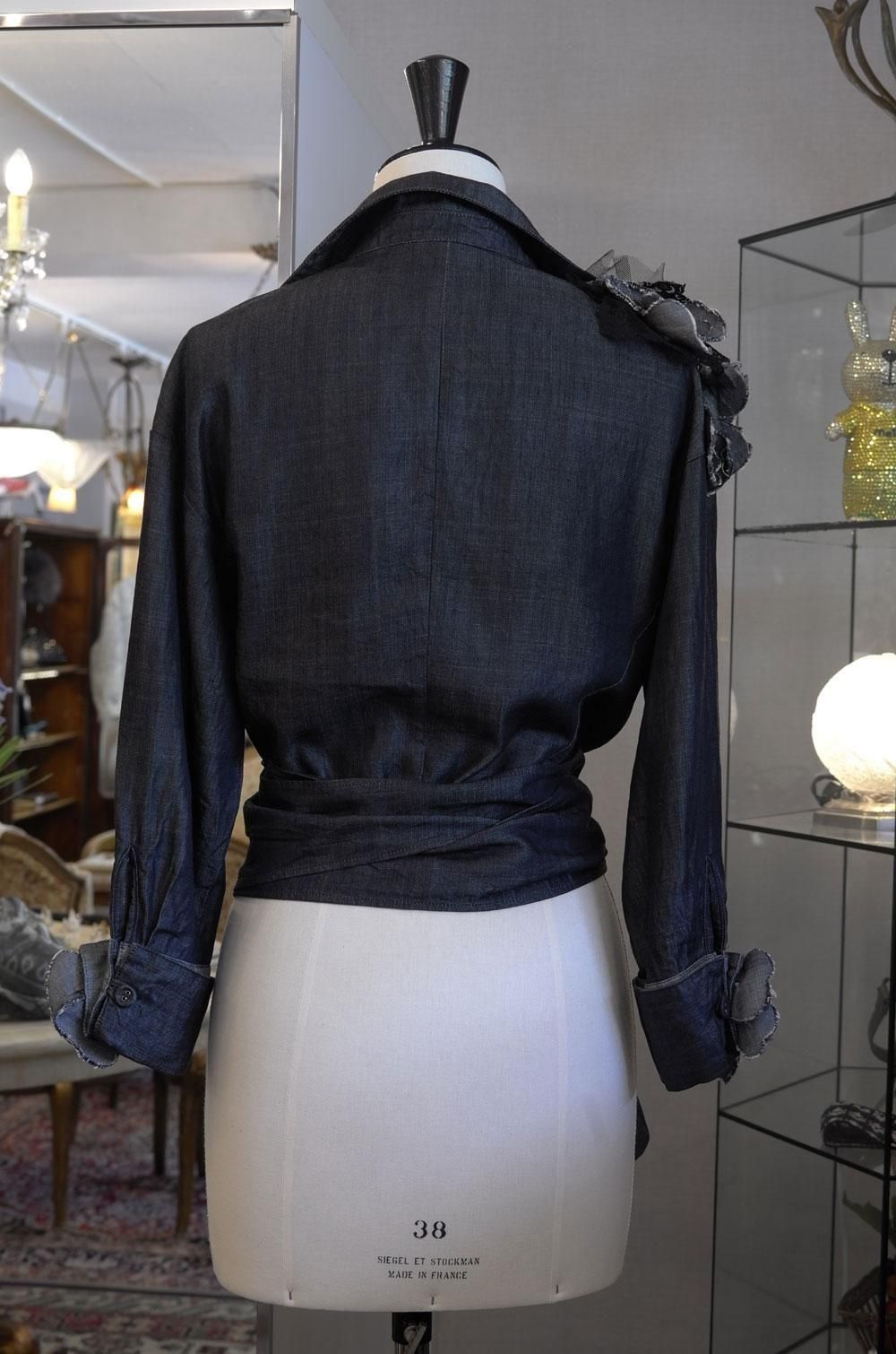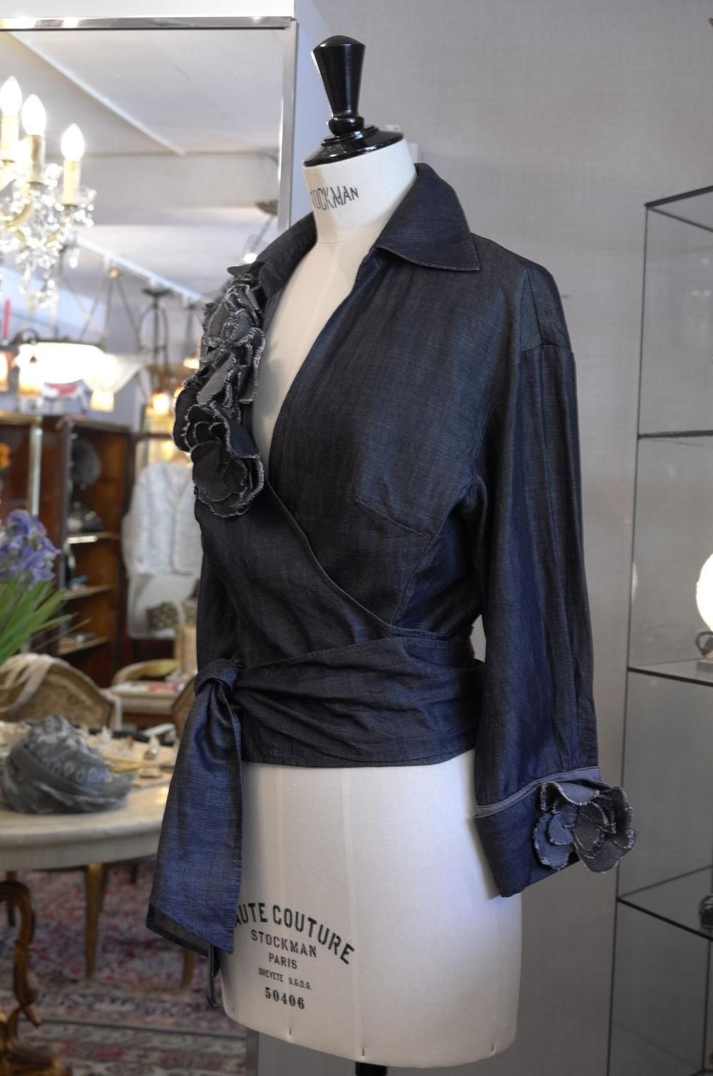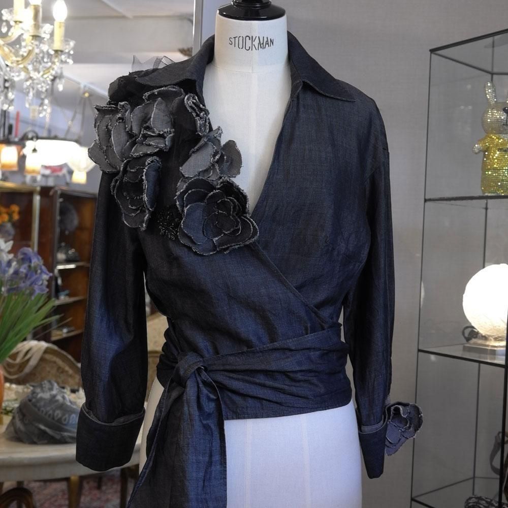 【フランス新品ファッションレディース】カシュクールジャケットアウター 花フラワー飾り 上質デニム生地 イタリー製 モダン パリ