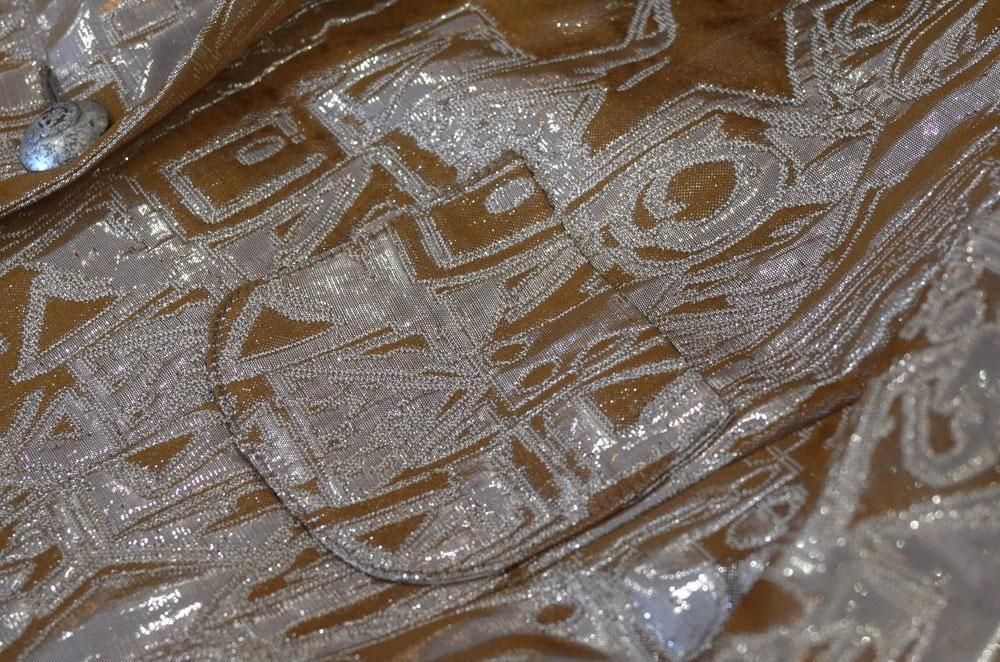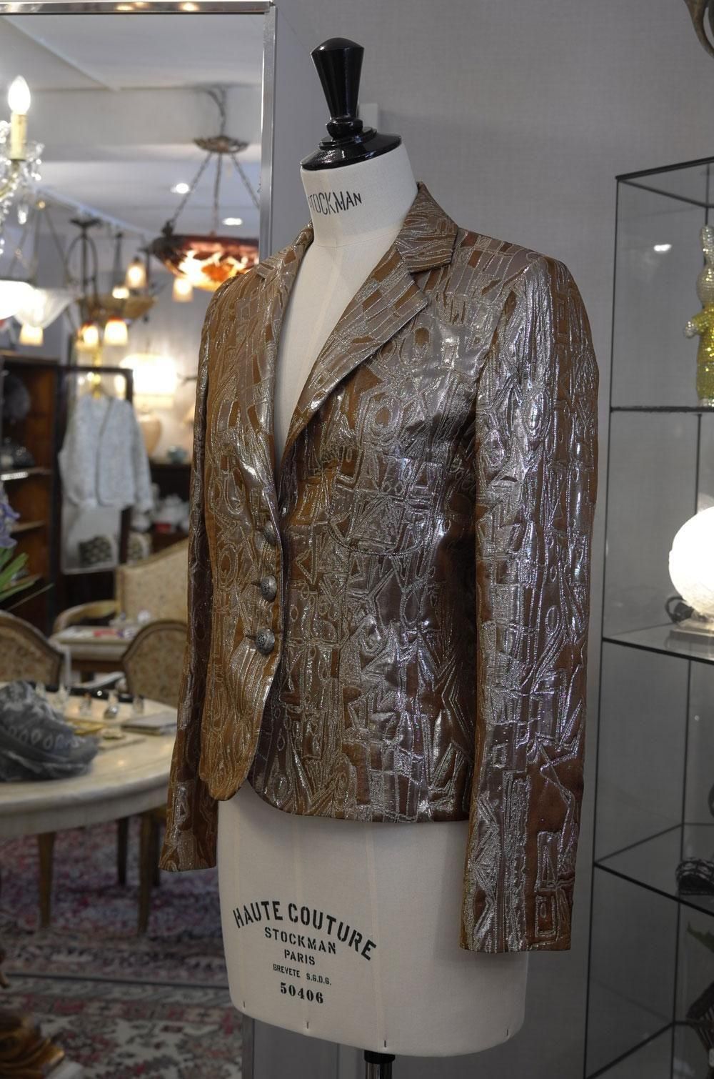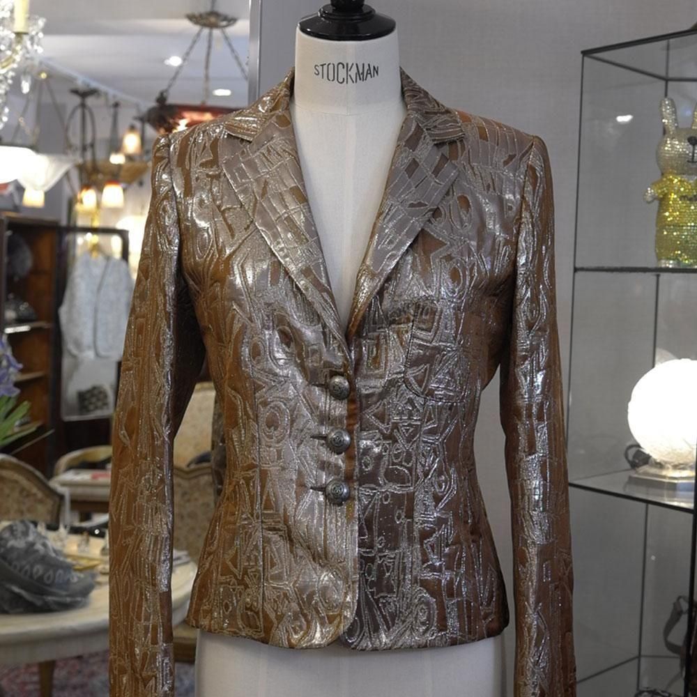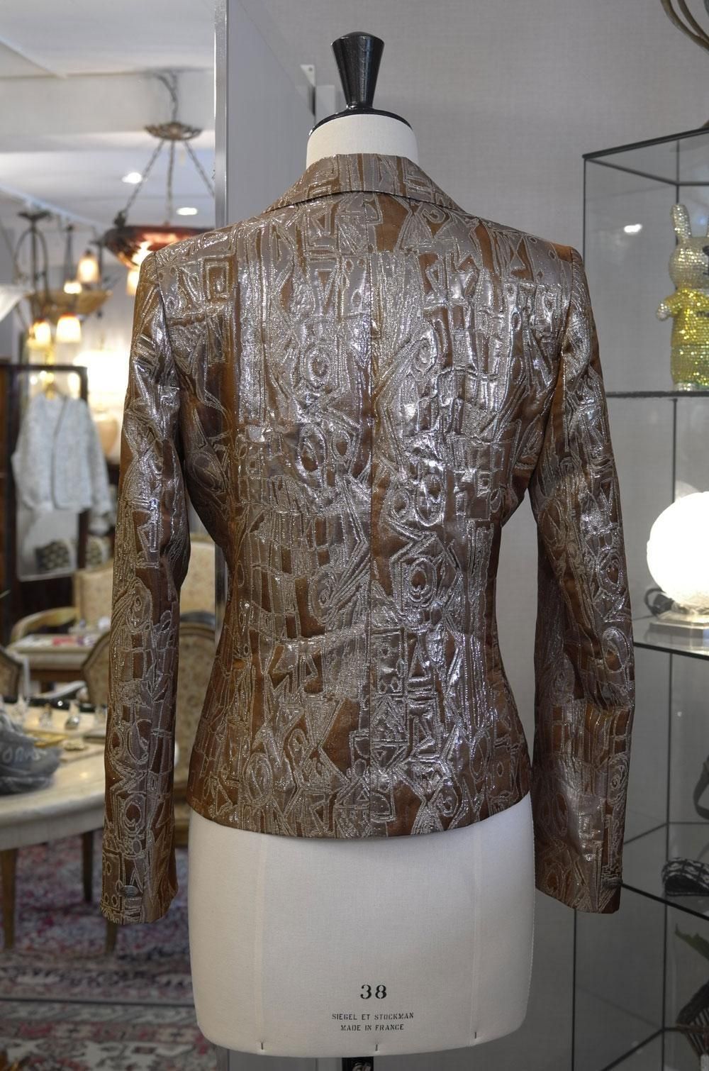 【フランス新品ファッションレディース】テーラードジャケットアウター 幾何学柄 金ボタン 茶ラメ モダン パリ