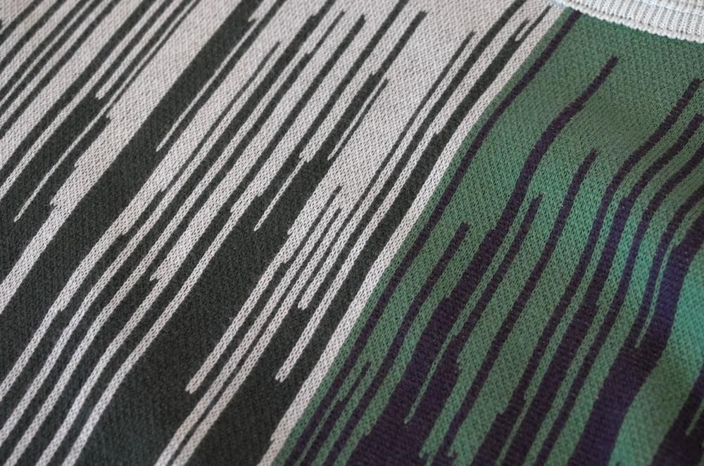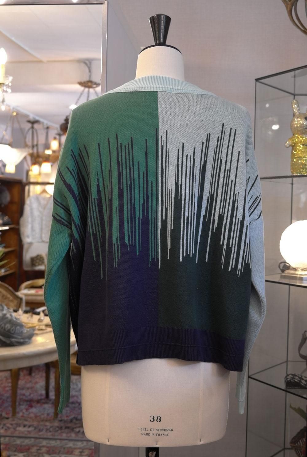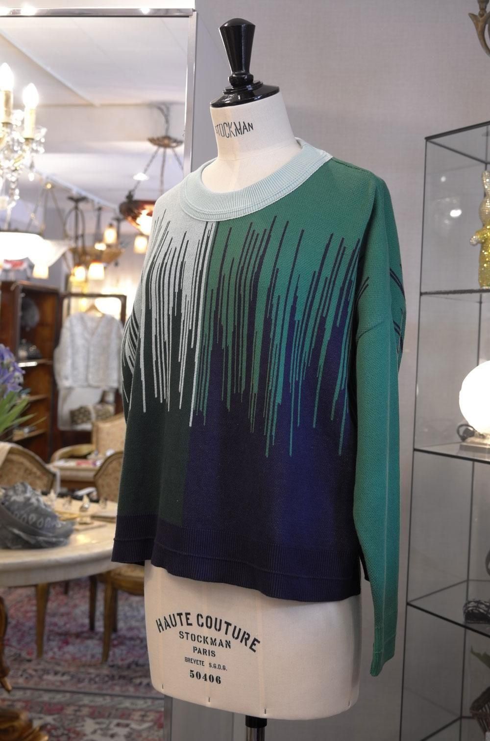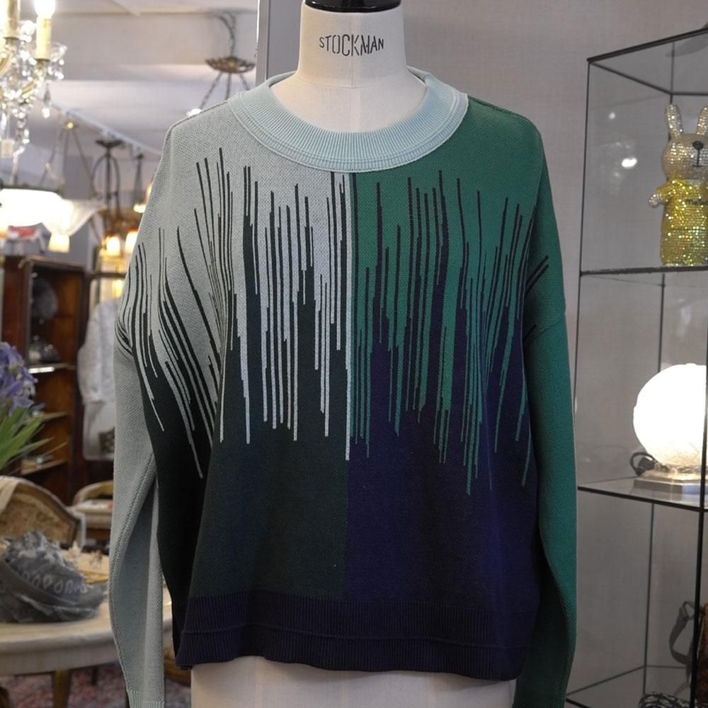 【フランス新品ファッションレディース】長袖ニットセーター 縦線モダン柄 緑グリー パリ