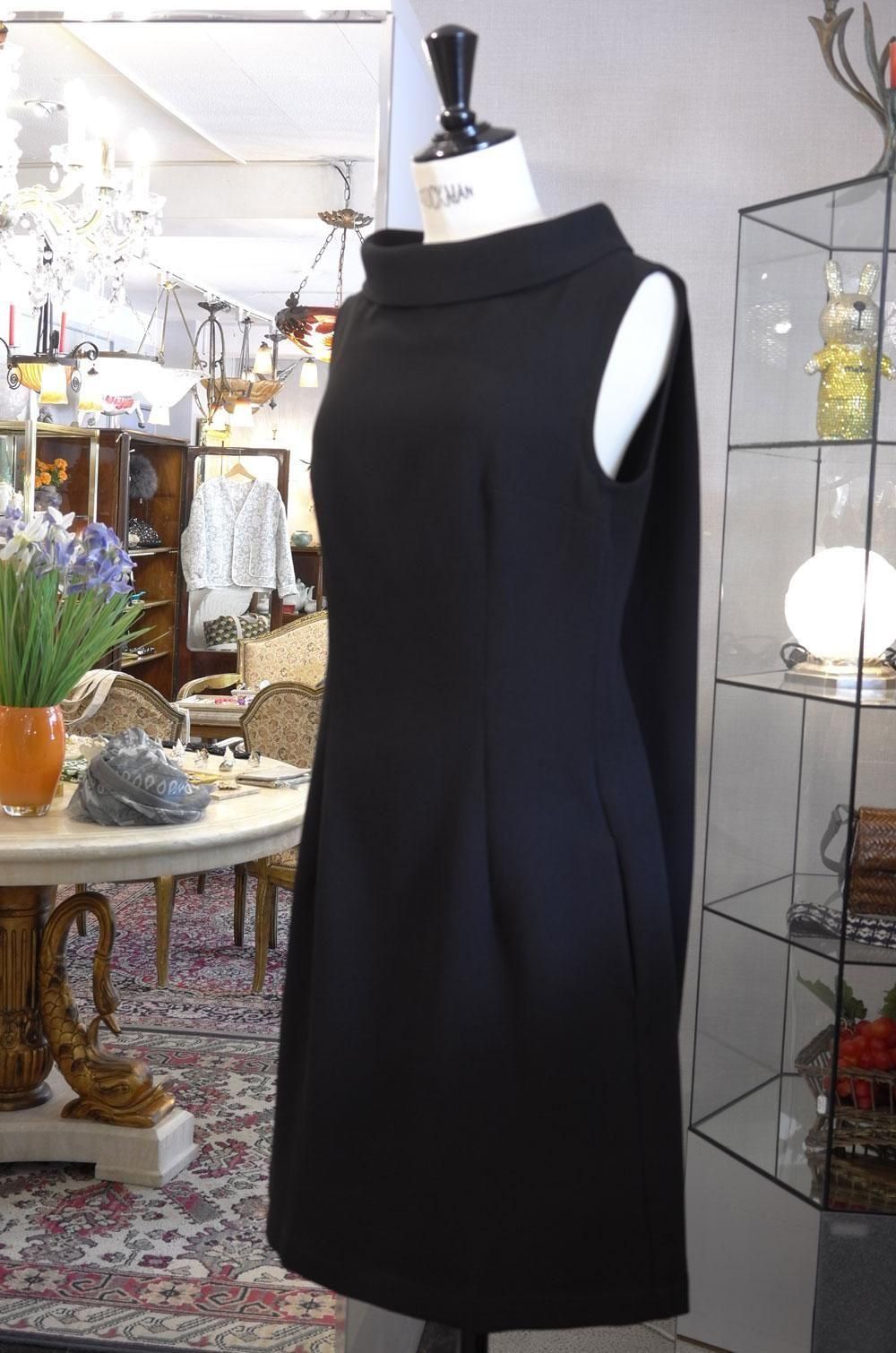 【フランス新品ファッションレディース】ノースリーブワンピース ロールカラー 隠しディティールあり 厚手上質黒 フレンチデザイナー モード パリ