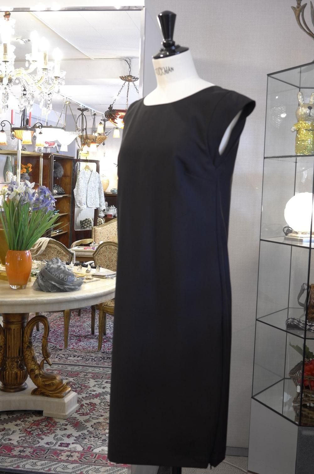 【フランス新品ファッションレディース】ノースリーブワンピース オブロングネック 張り感あり上質紺 フレンチ モード パリ