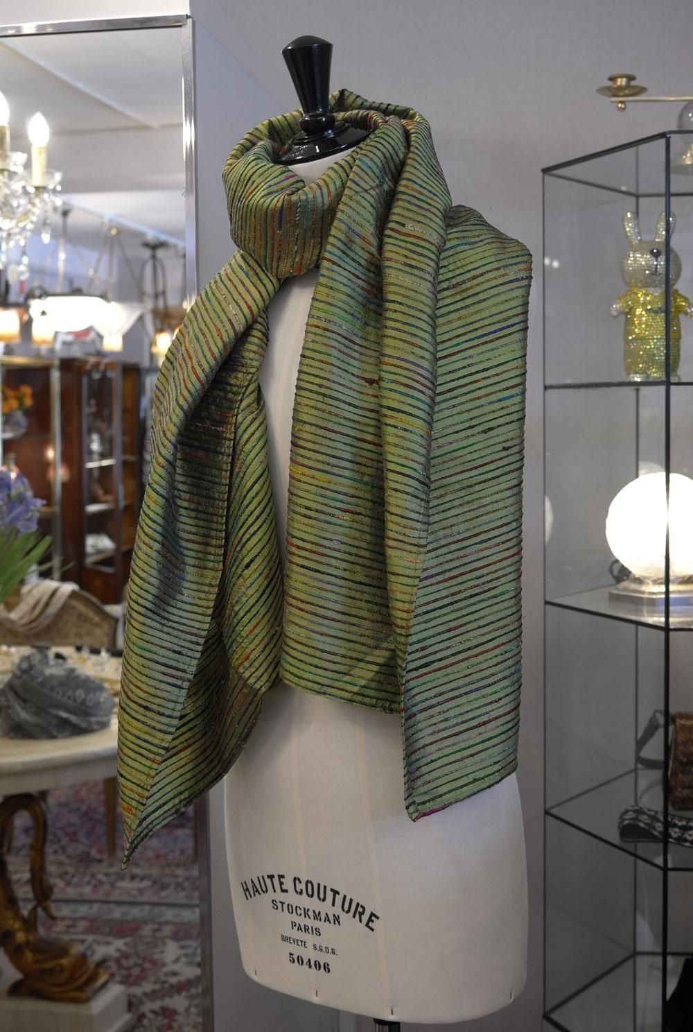 【フランス新品ファッション雑貨レディース】マフラー ストール 縞横ボーダー 玉虫マルチカラー 中厚 モダン パリ