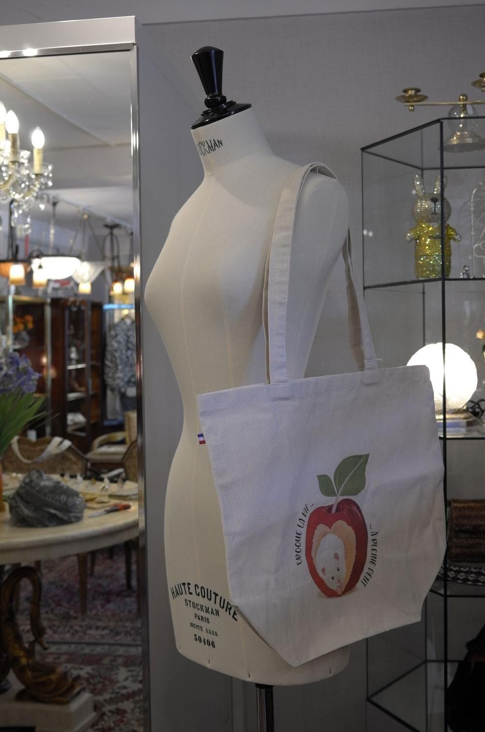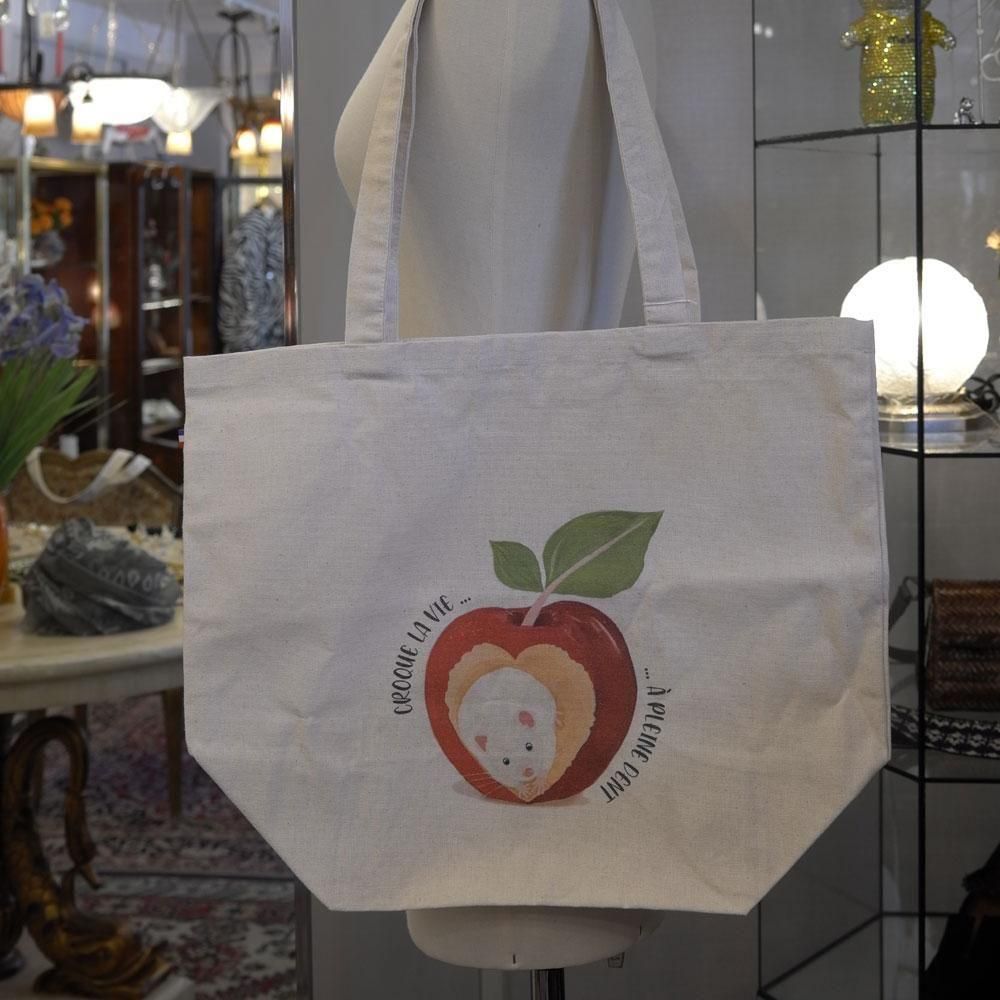 【フランス新品ファッション雑貨レディース】トートショルダーバック リンゴねずみ キャンパス地 モダン パリ