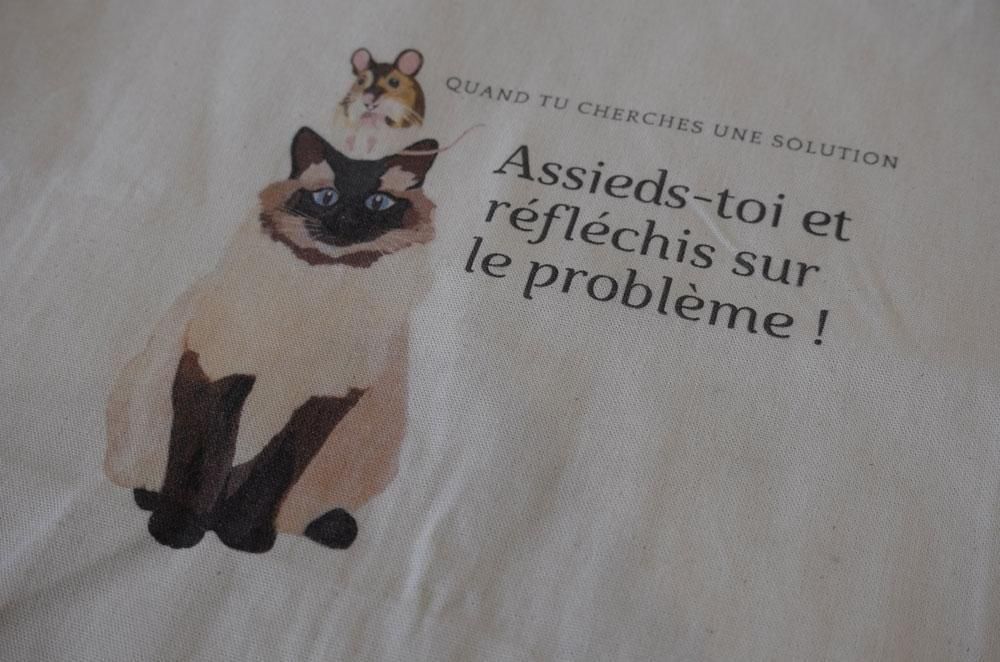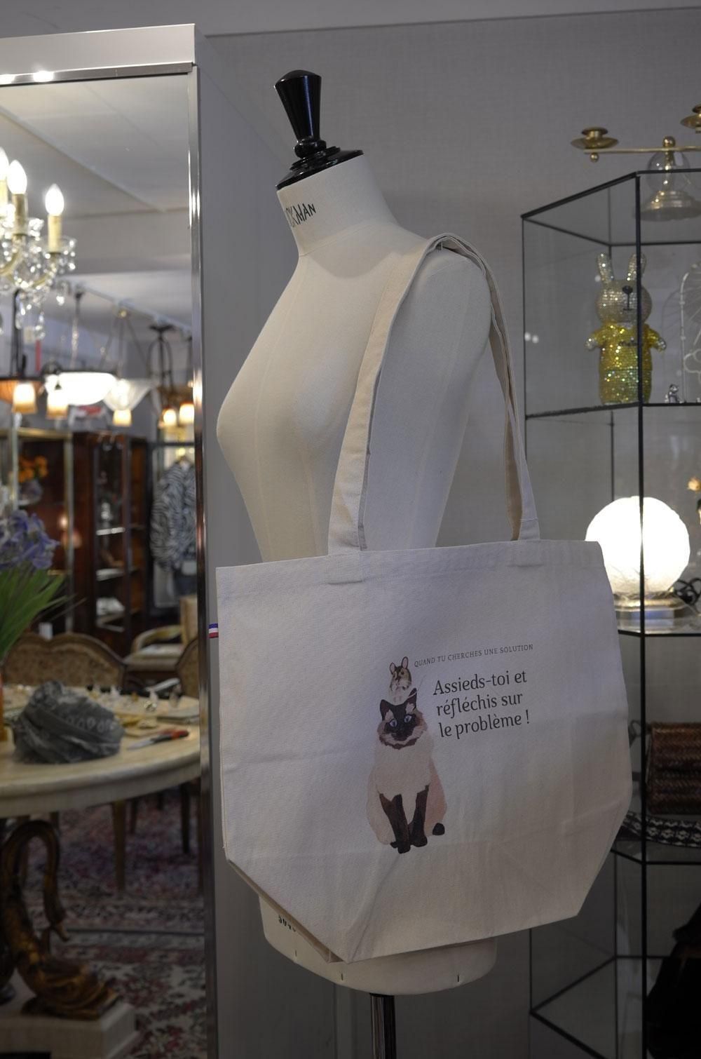 【フランス新品ファッション雑貨レディース】トートショルダーバック 猫ねずみ キャンパス地 モダン パリ