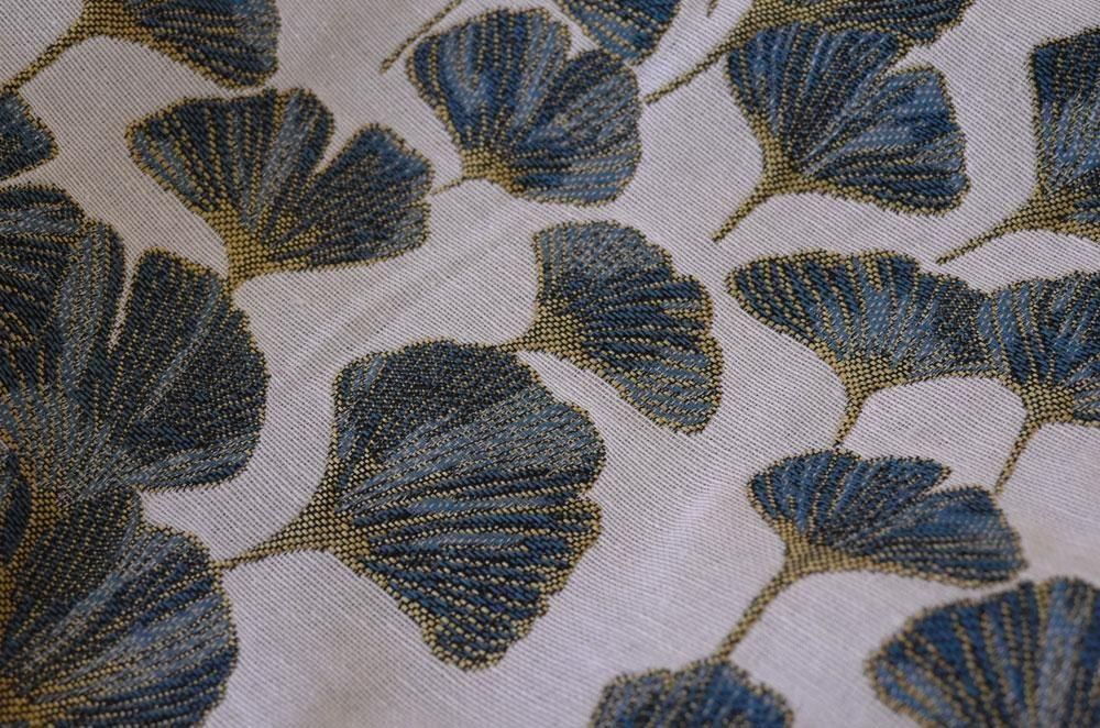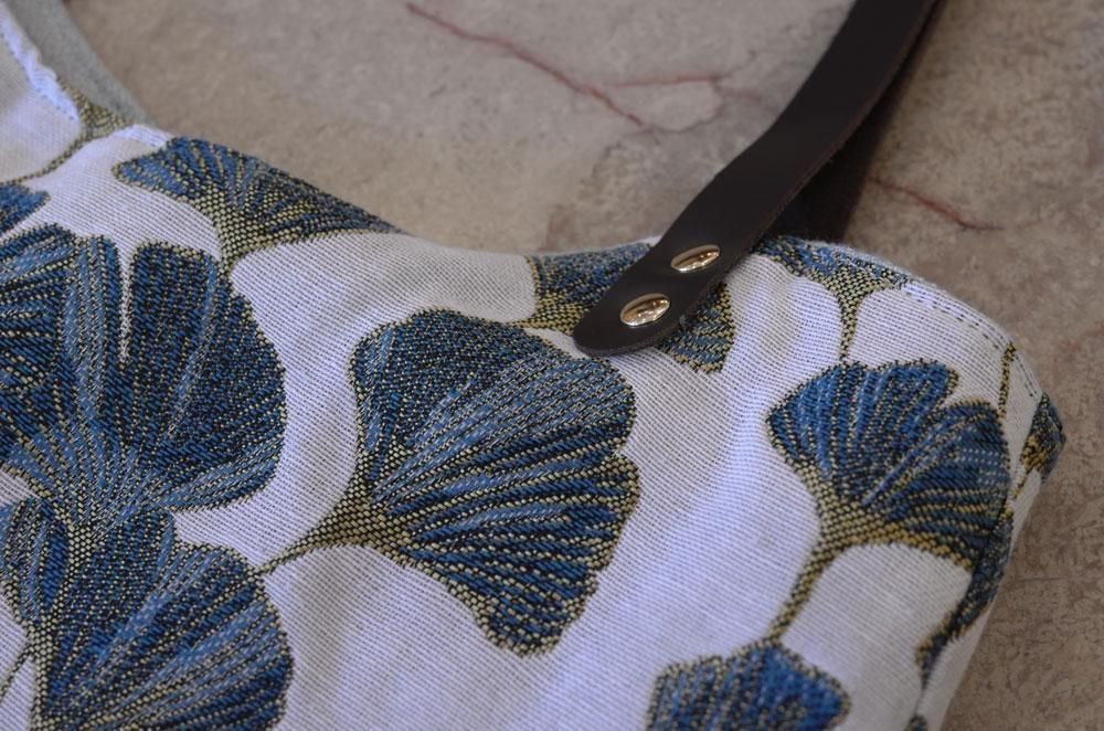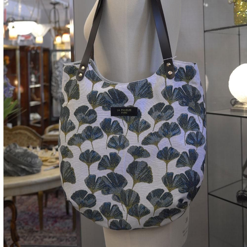 【フランス新品ファッション雑貨レディース】トートバック ショルダー イチョウ銀杏柄 白青金織り 革持ち手 フレンチデザイナー パリ