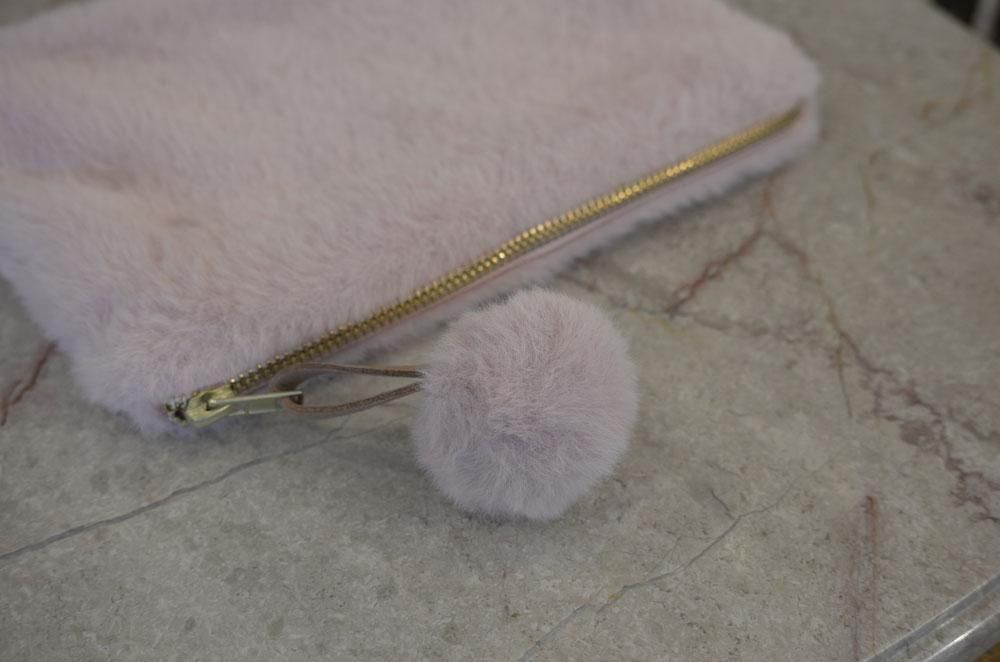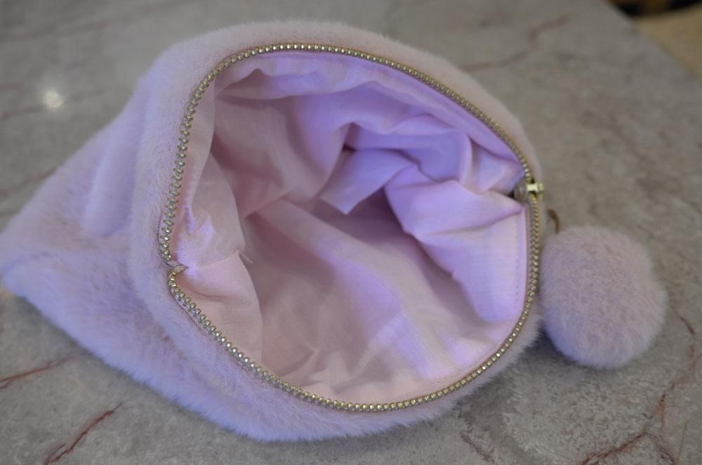 【フランス新品ファッション雑貨レディース】ポーチ小物入れ もふもふ ファスナー 4色 モダン パリ