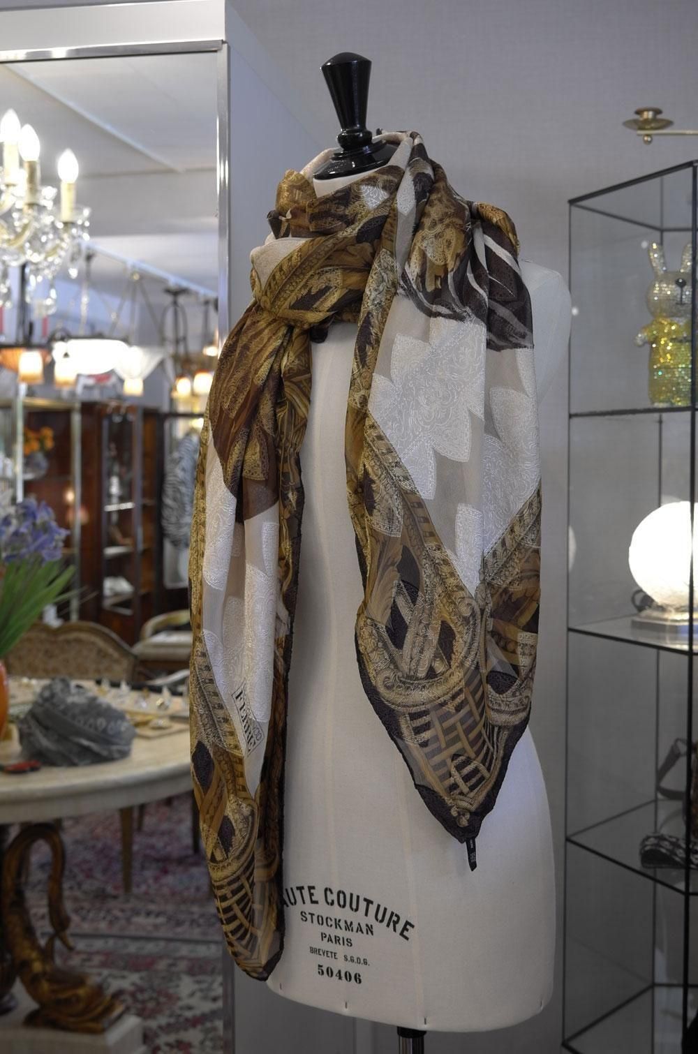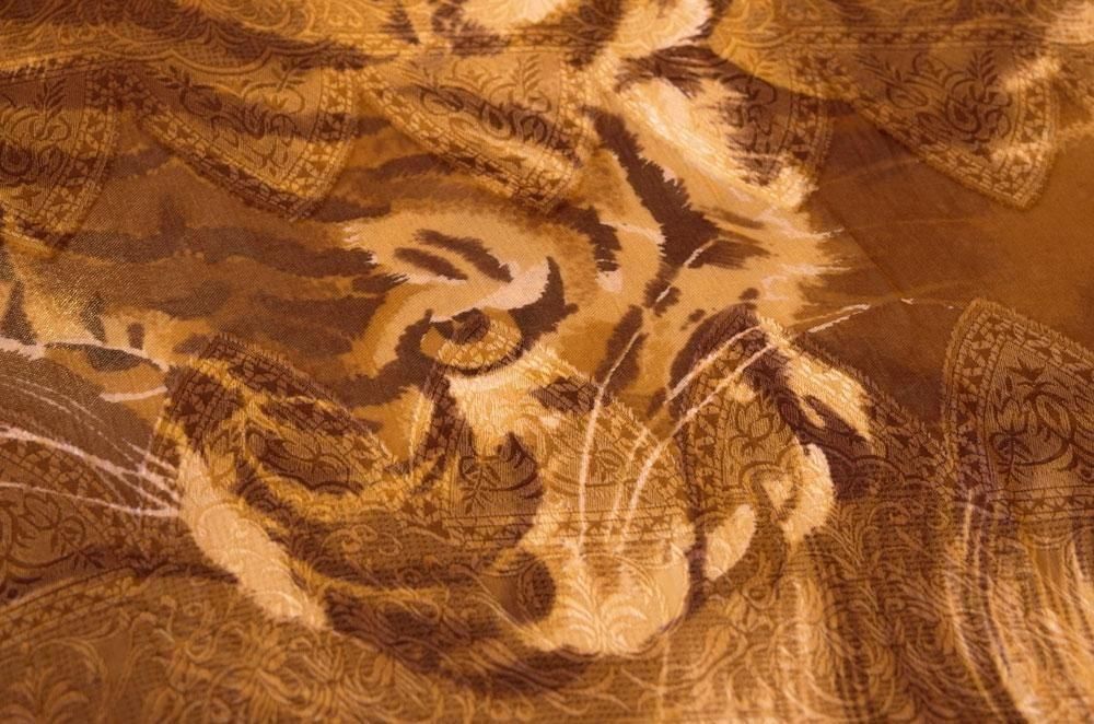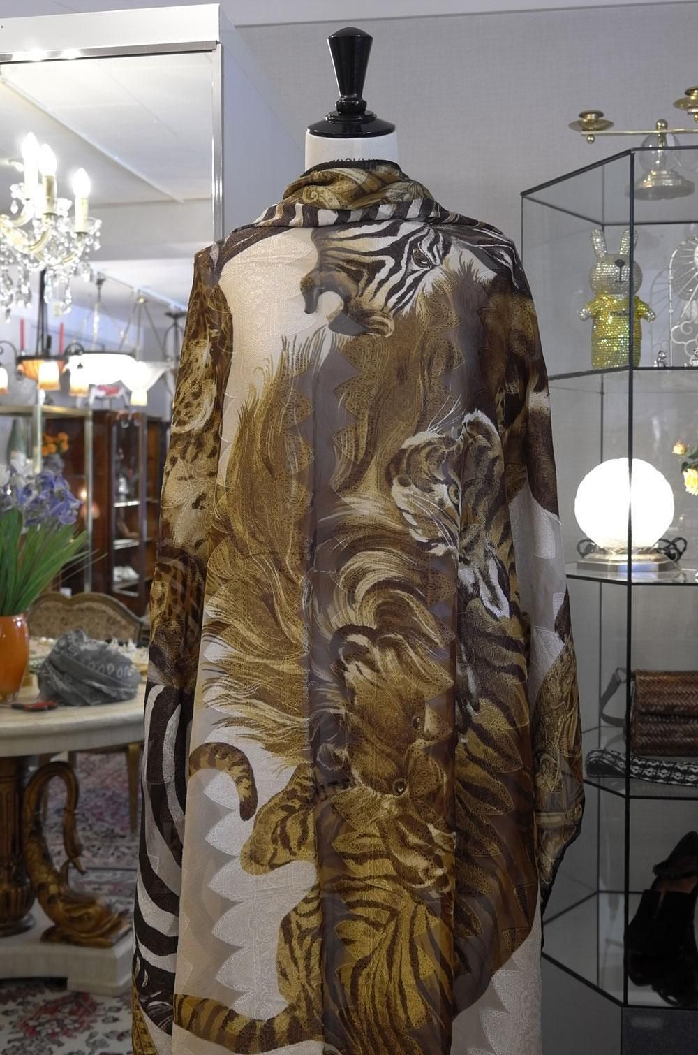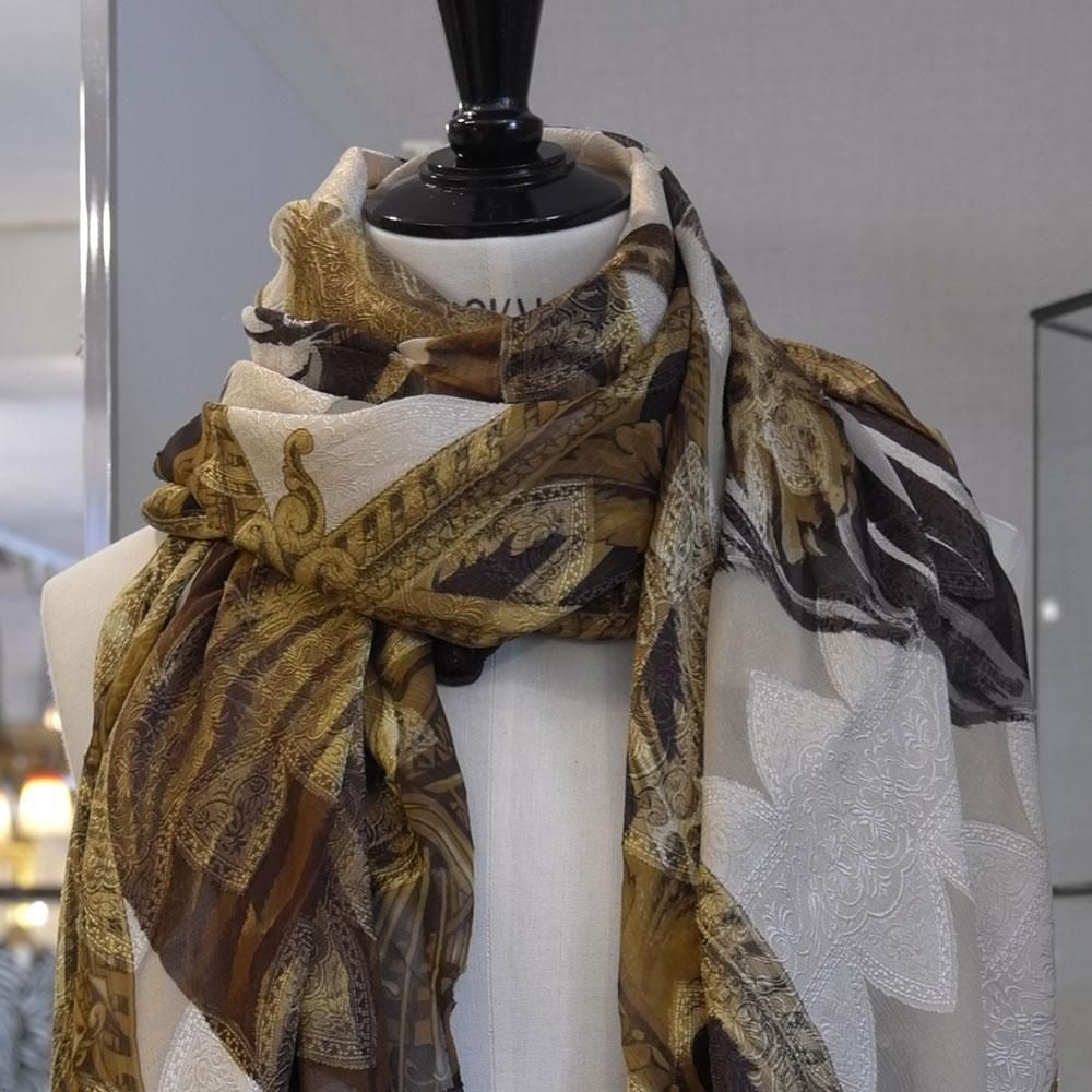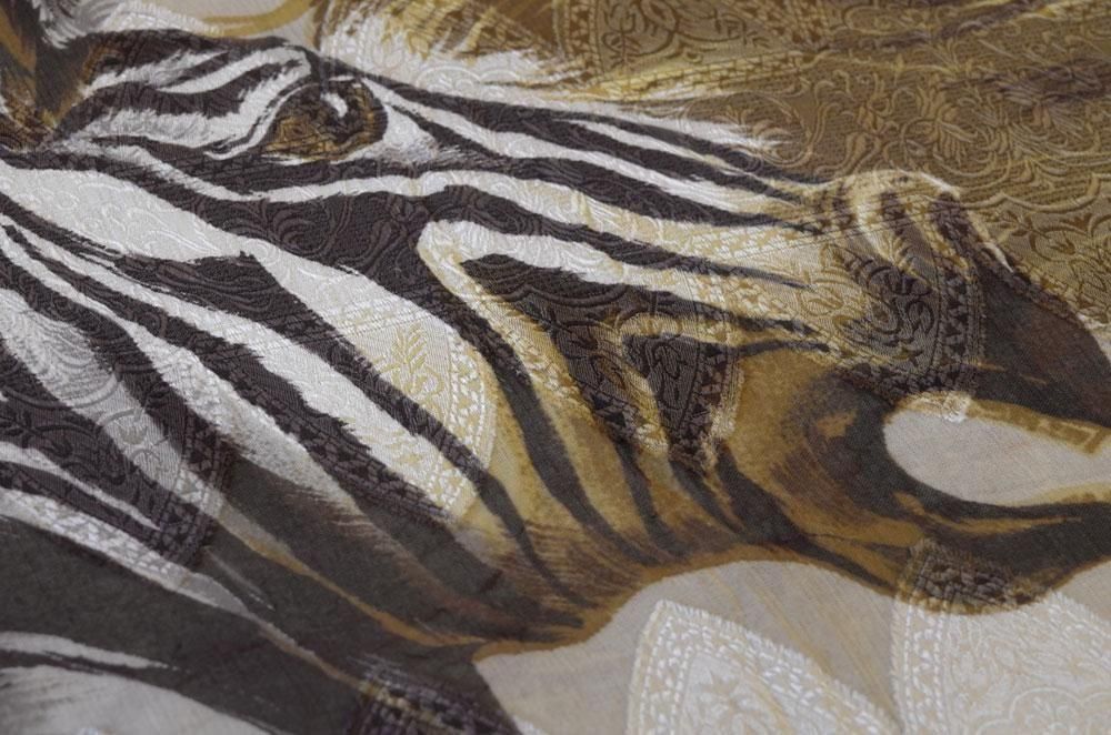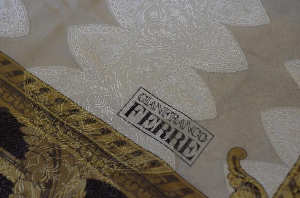 【フランスヴィンテージファッション雑貨レディース】GIANFRANCO FERRE 大判ストール 縞馬虎プリント 地模様あり オートクチュール 茶金系 ハイブランド ジャンフランコ・フェレ パリ