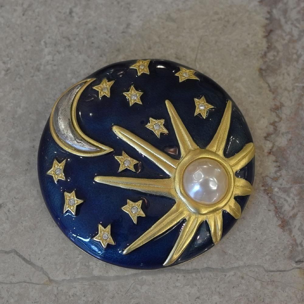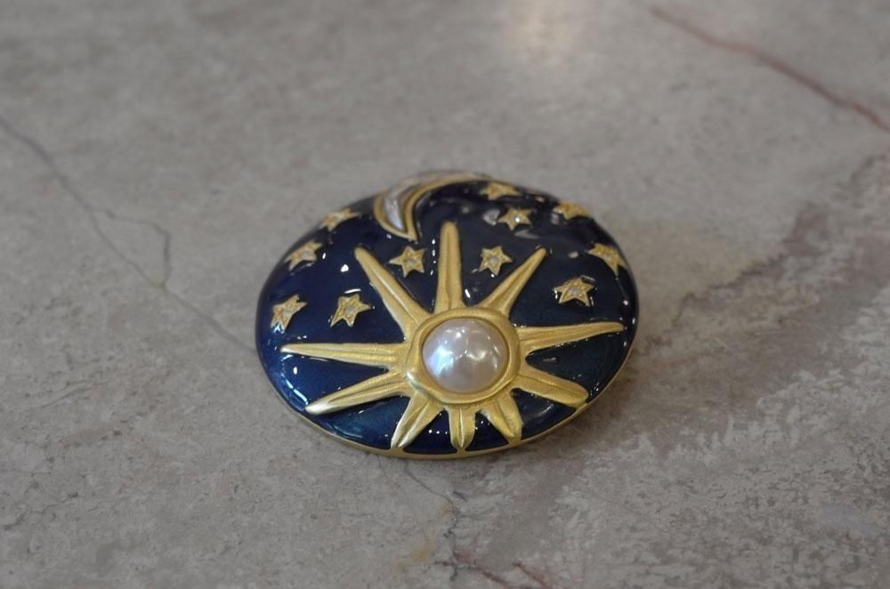 【フランスヴィンテージアクセサリーレディース】KARL LAGERFELD ブローチピンバッジ 太陽月星 sun moon stars カールラガーフェルド モードハイファッション 一点もの パリ