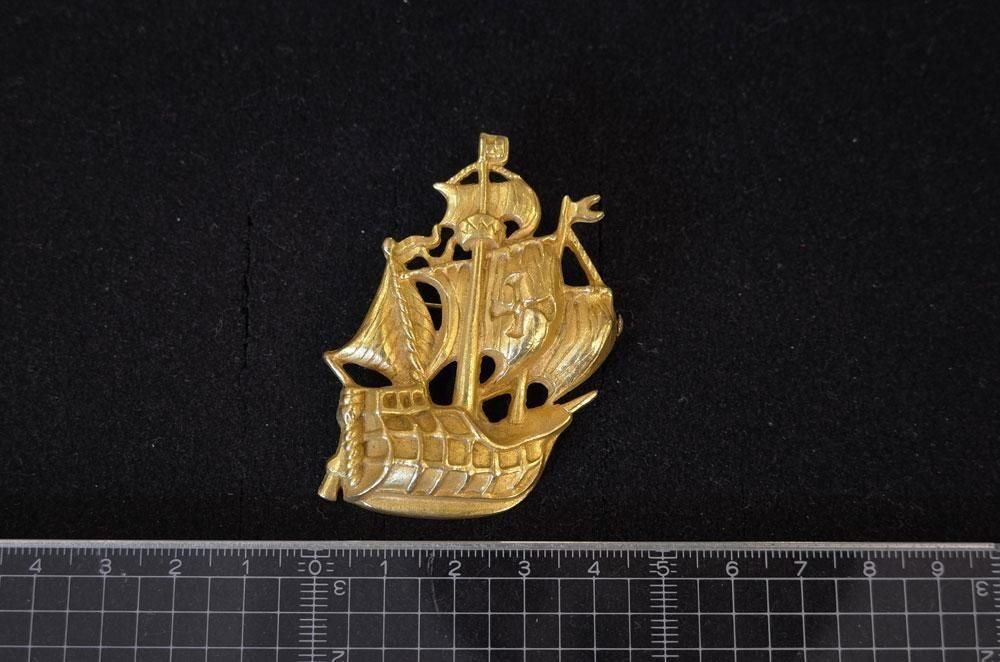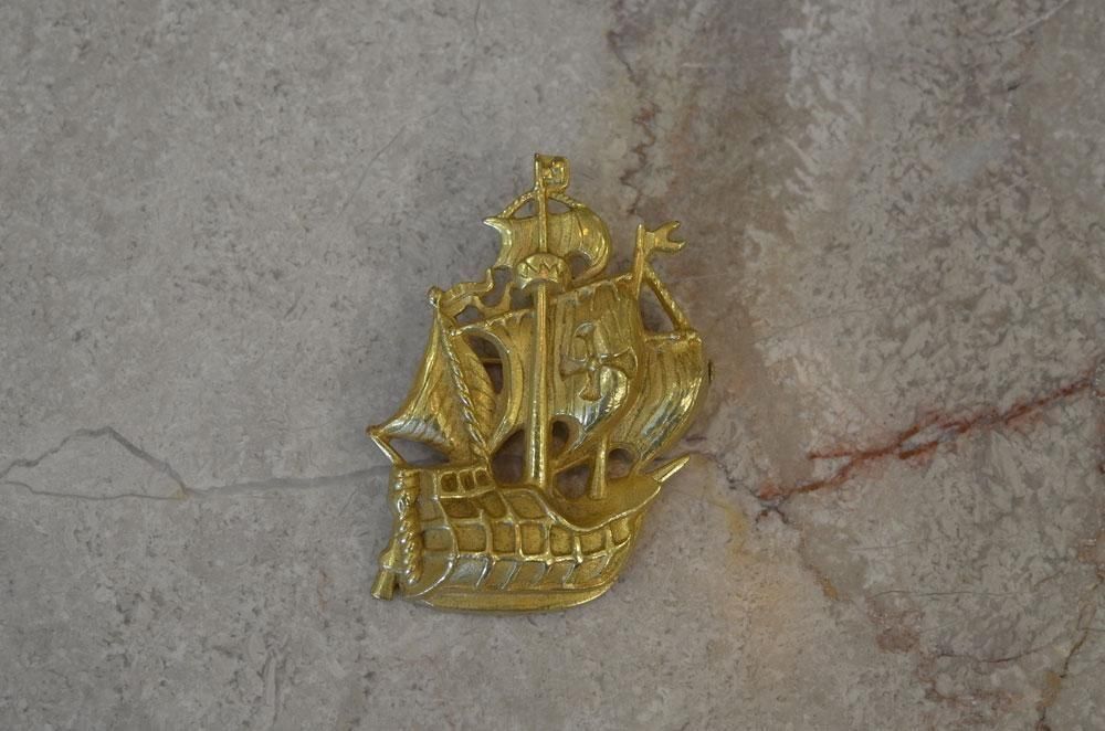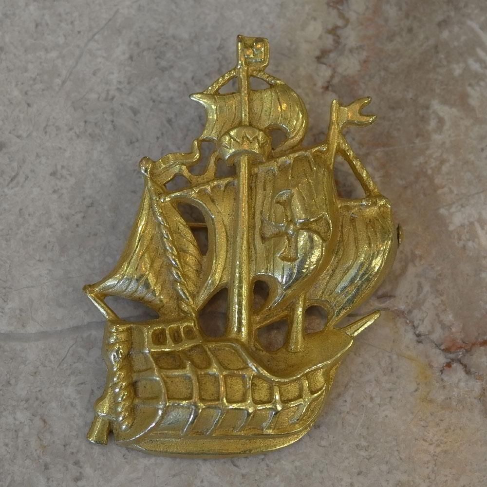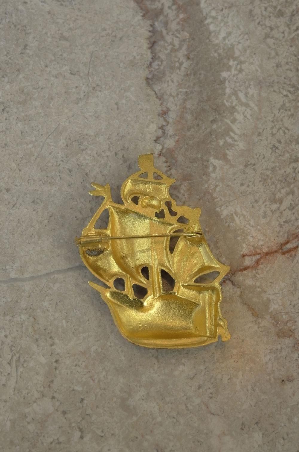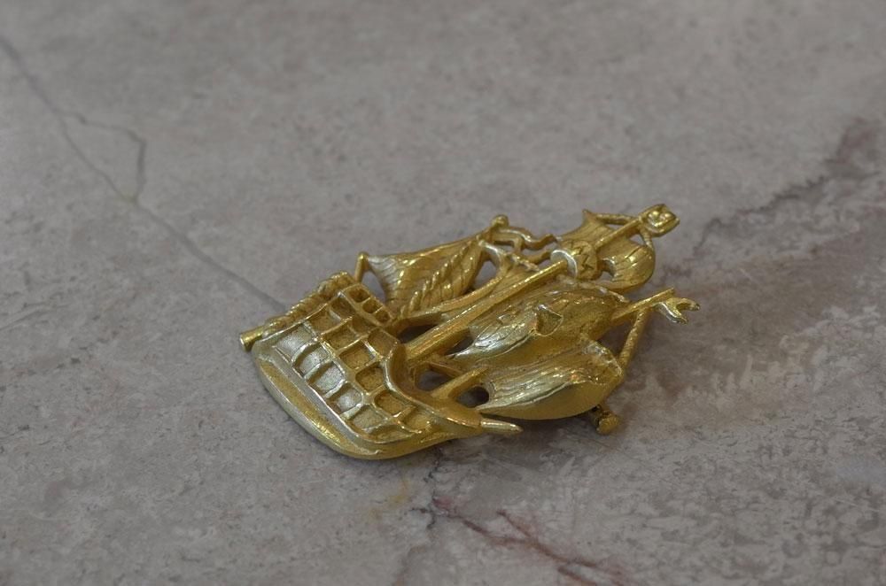 【フランスヴィンテージアクセサリーレディース】ブローチピンバッジ 帆船 海賊ガレオン船 金ゴールド 一点もの ファッション パリ