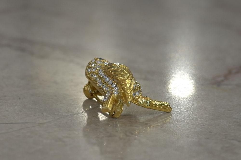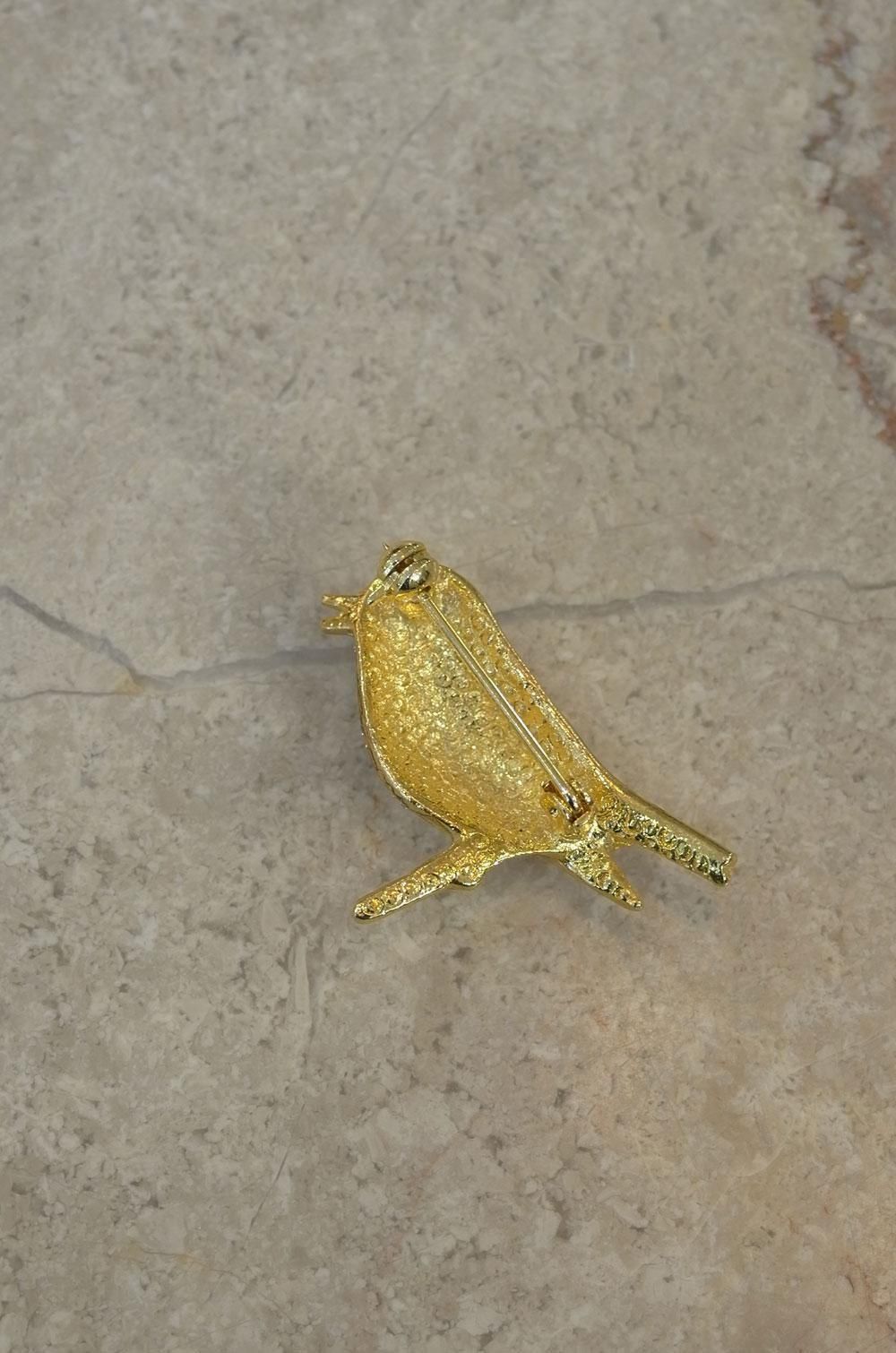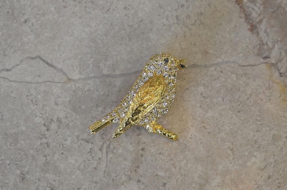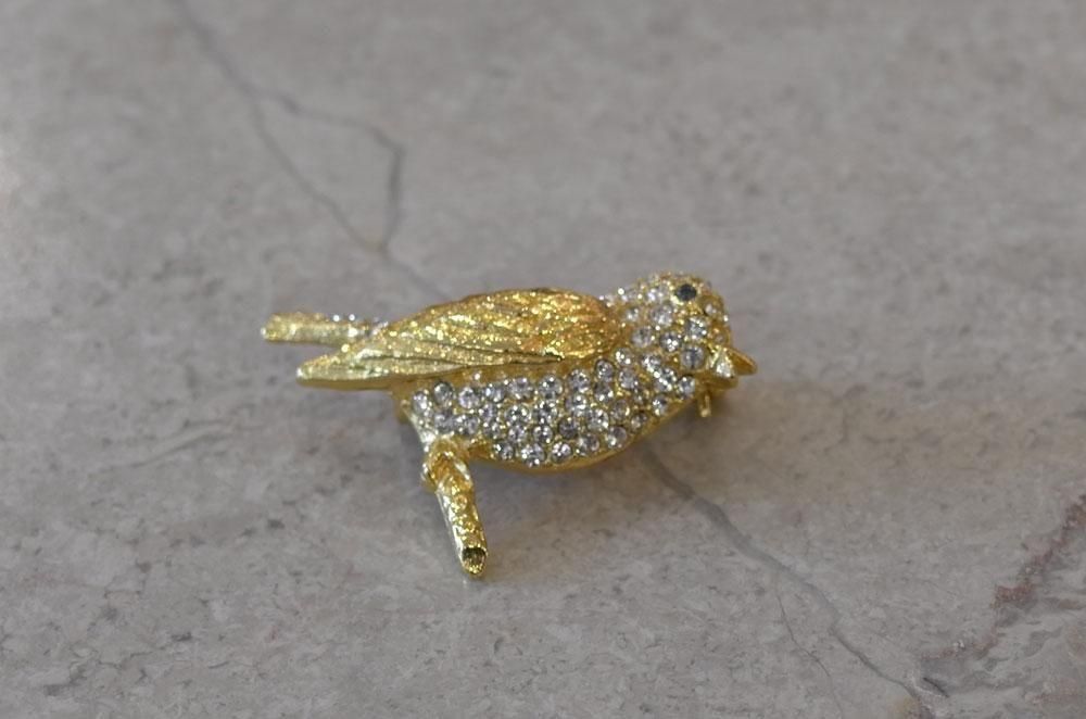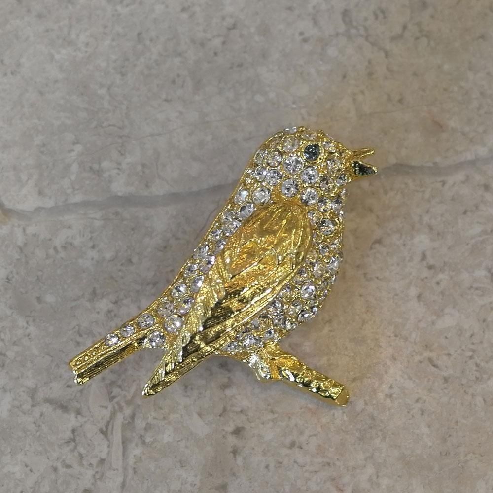 【フランスヴィンテージアクセサリーレディース】ブローチピンバッジ 小鳥 ラインストーン 金ゴールド 一点もの ファッション パリ
