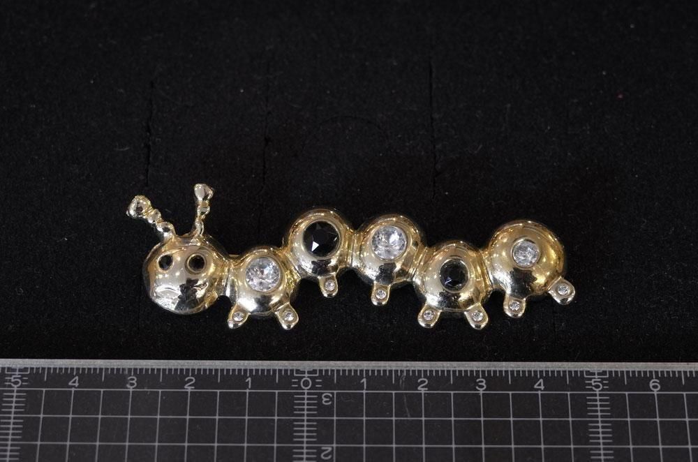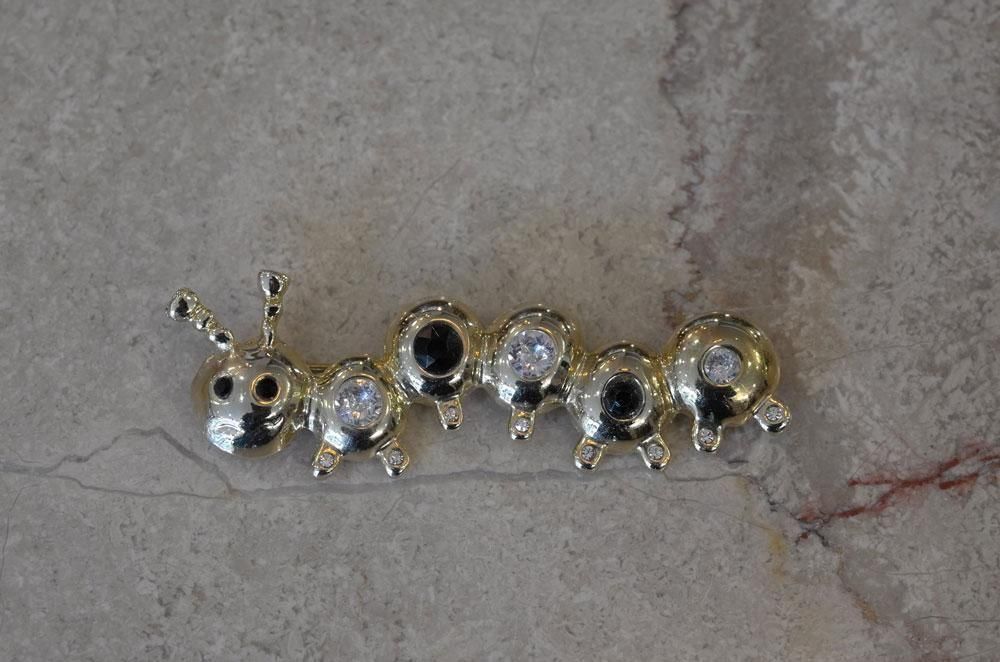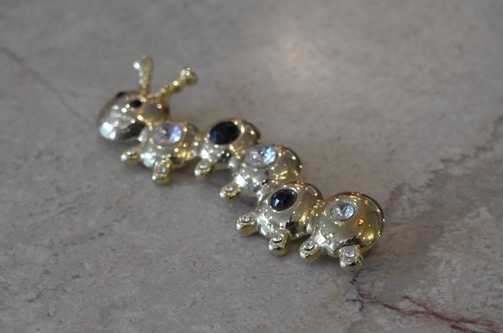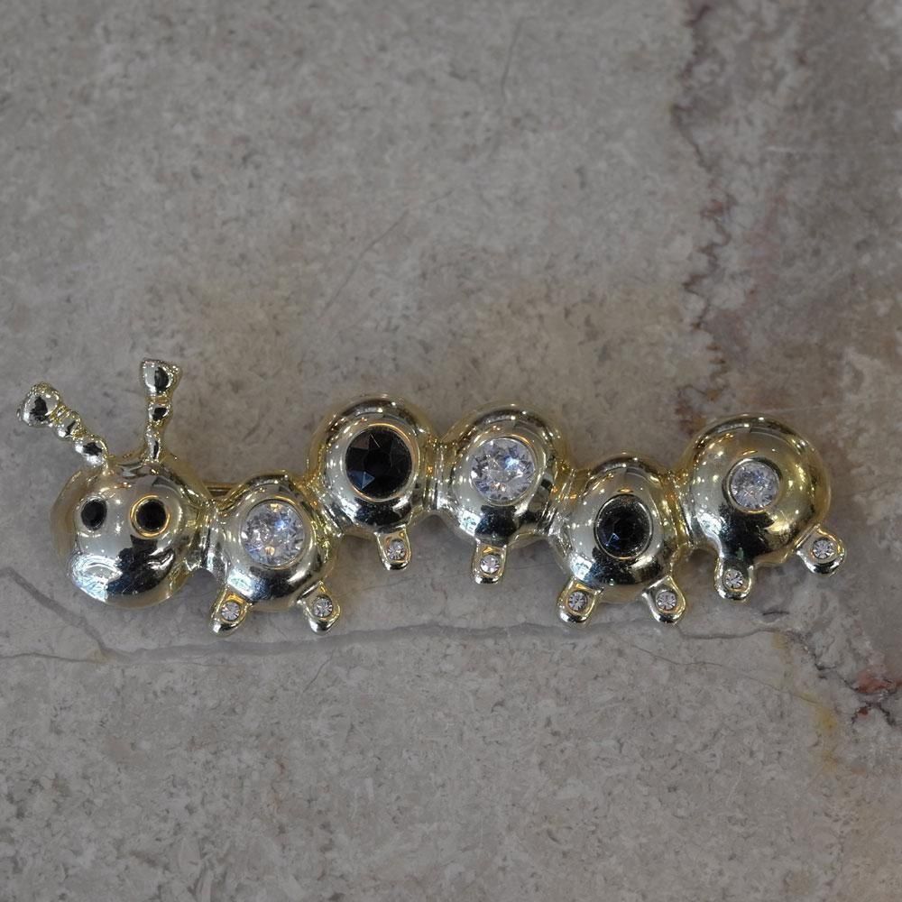 【フランスヴィンテージアクセサリーレディース】ブローチピンバッジ 芋虫イモムシ 銀シルバー 一点もの ファッション パリ