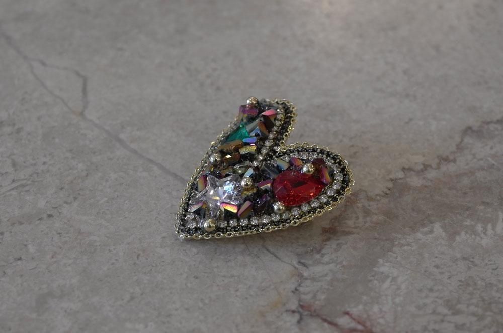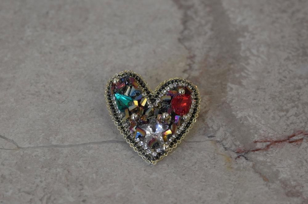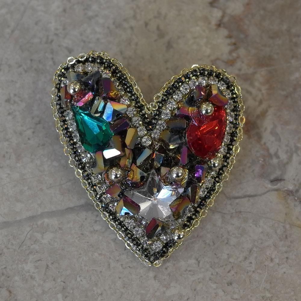 【フランス新品アクセサリーレディース】ブローチピンバッジ ハート キラキラビーズ モダン ファッション パリ