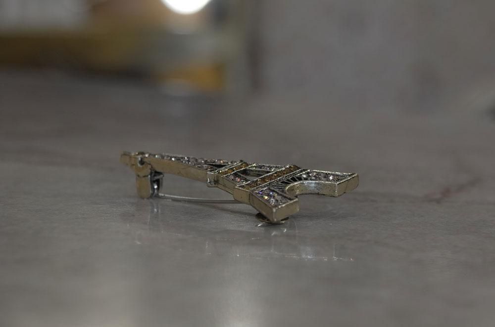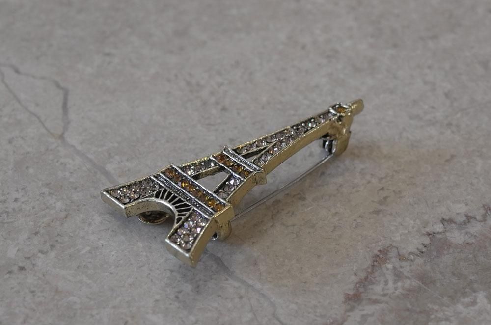 【フランス新品アクセサリーレディース】ブローチピンバッジ エッフェル塔 ラインストーン 金キラキラ モダン ファッション パリ