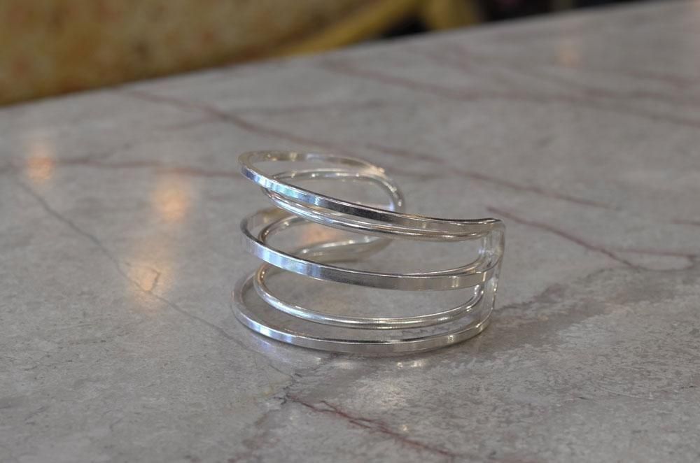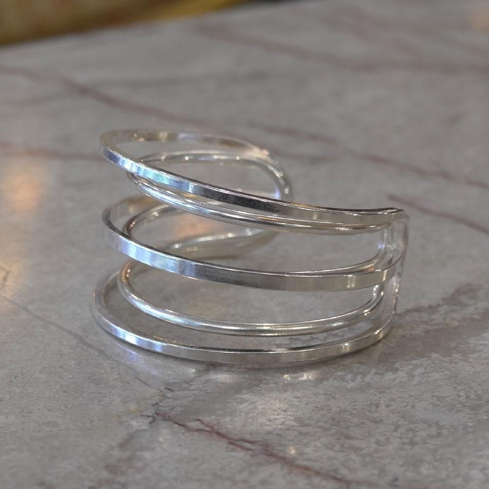 【フランス新品アクセサリーレディース】バングル ブレスレット アーティスチック 純銀メッキ 作家もの モダンファッション パリ