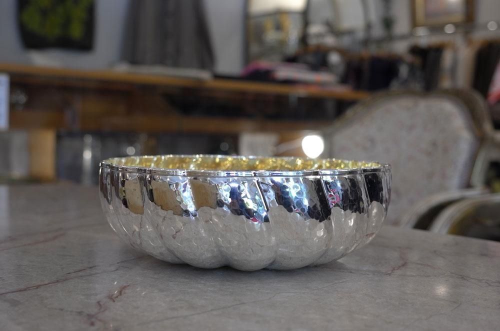 【フランスヴィンテージ雑貨】LANCEL お菓子パン入れ 大 トレイ皿 銀製品 渦文様 金ヴェルメイユ ランセル ハイブランド インテリア パリ