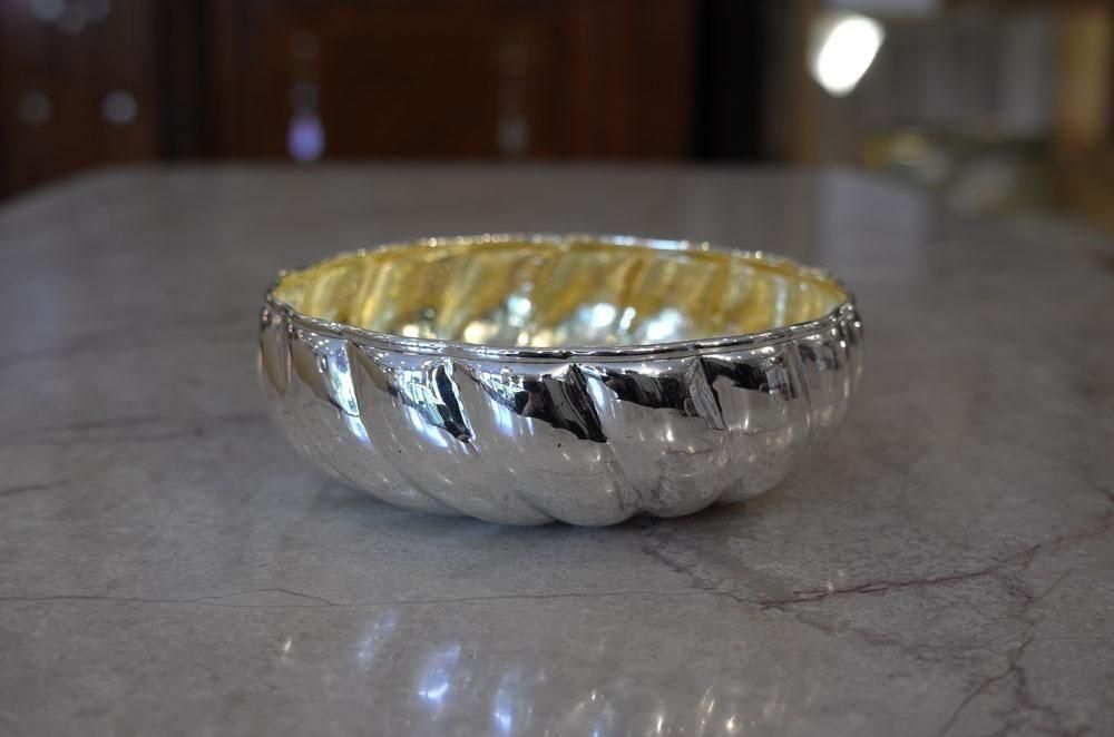 【フランスヴィンテージ雑貨】LANCEL お菓子パン入れ 小 トレイ皿 銀製品 渦文様 金ヴェルメイユ ランセル ハイブランド インテリア パリ