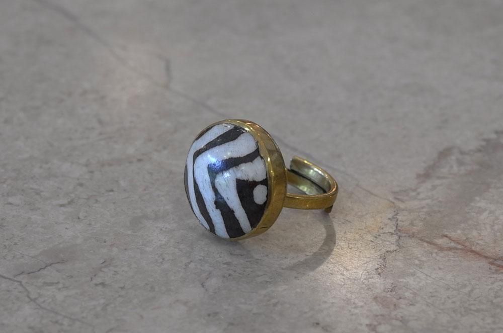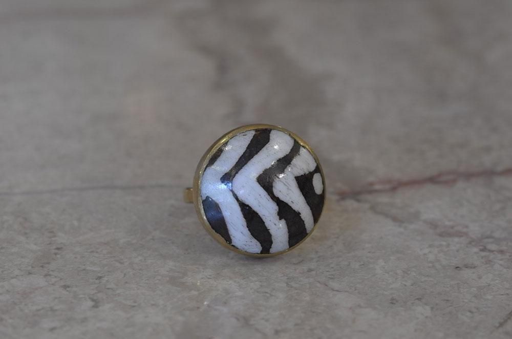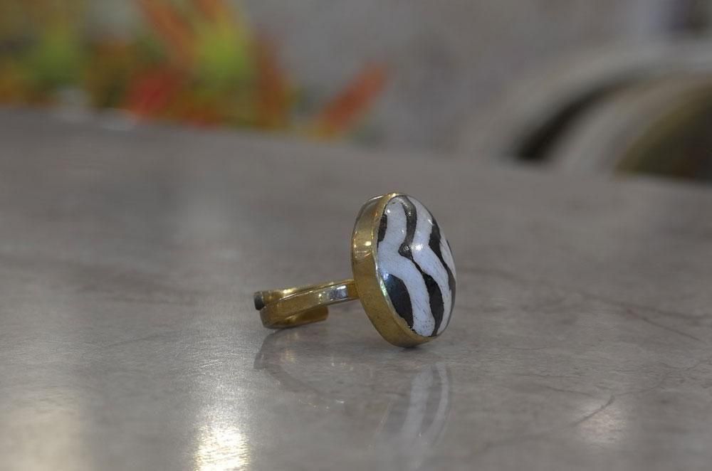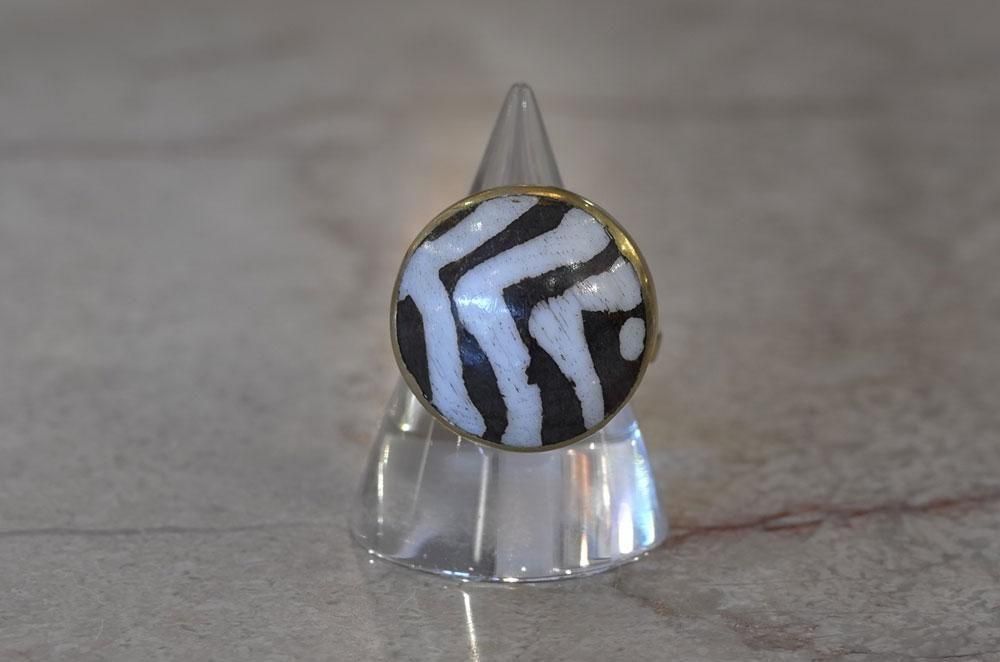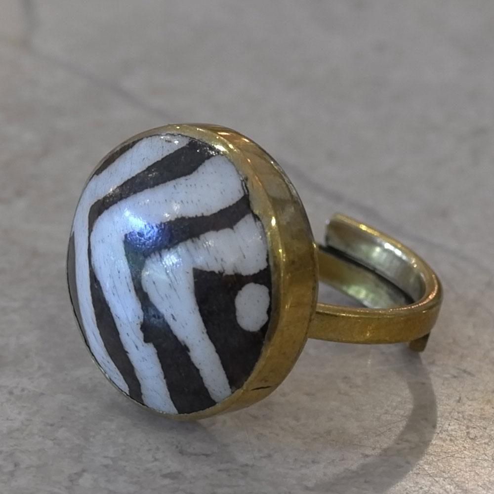 【フランス新品アクセサリーレディース】指輪 リング 縞馬柄 レジン アフリカンデザイナー作 モダン パリ