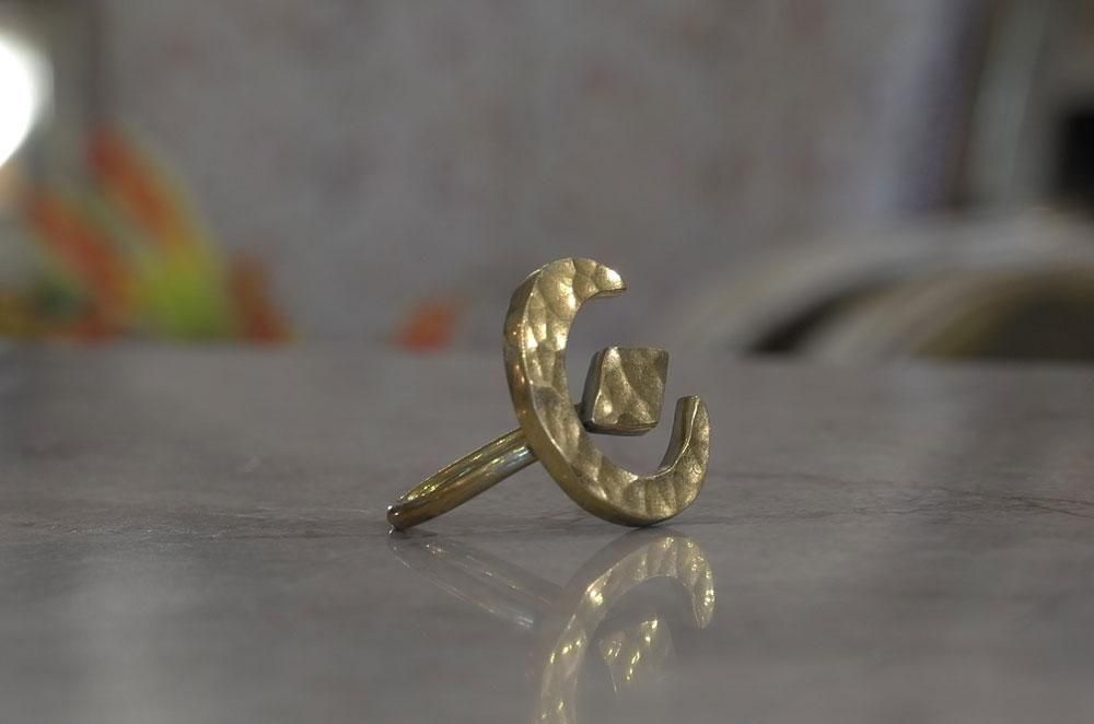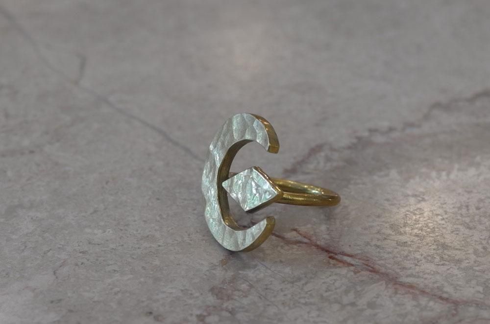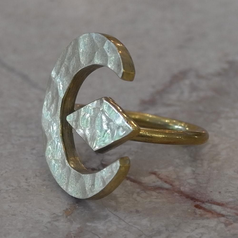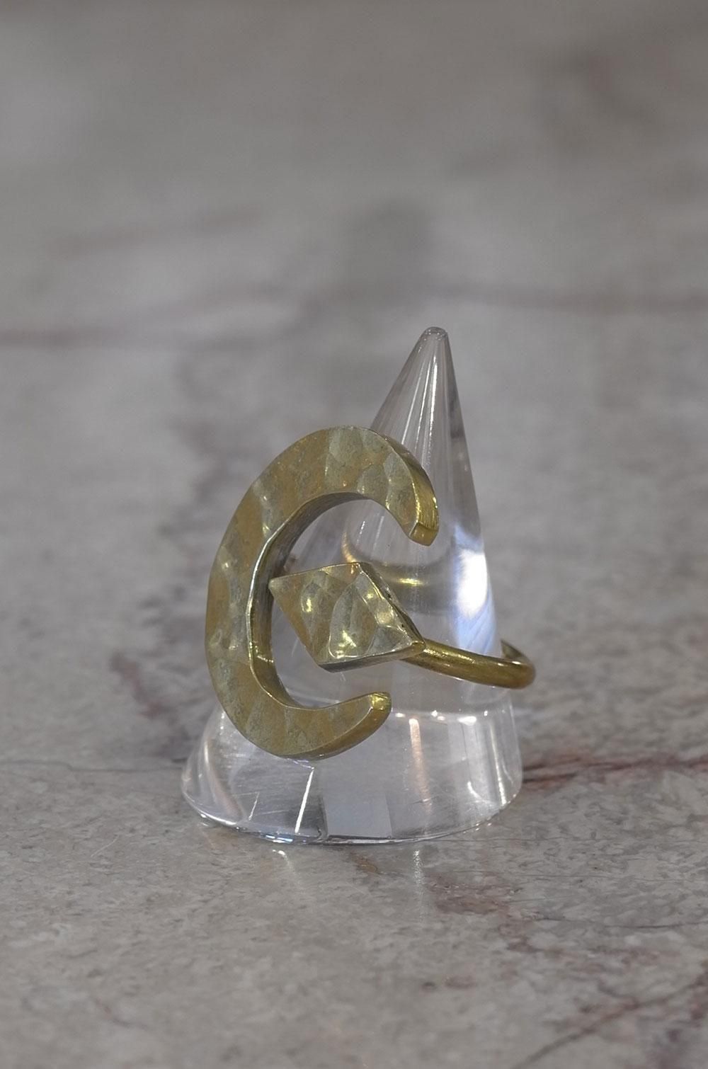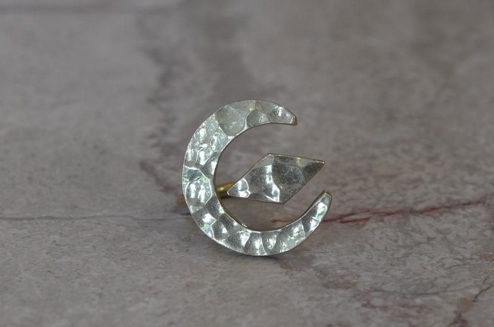 【フランス新品アクセサリーレディース】指輪 リング 月と槍 真鍮合金 アフリカンデザイナー作 モダン パリ