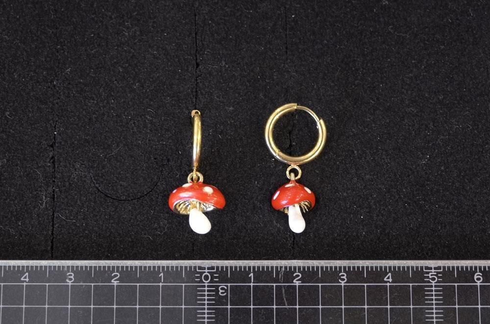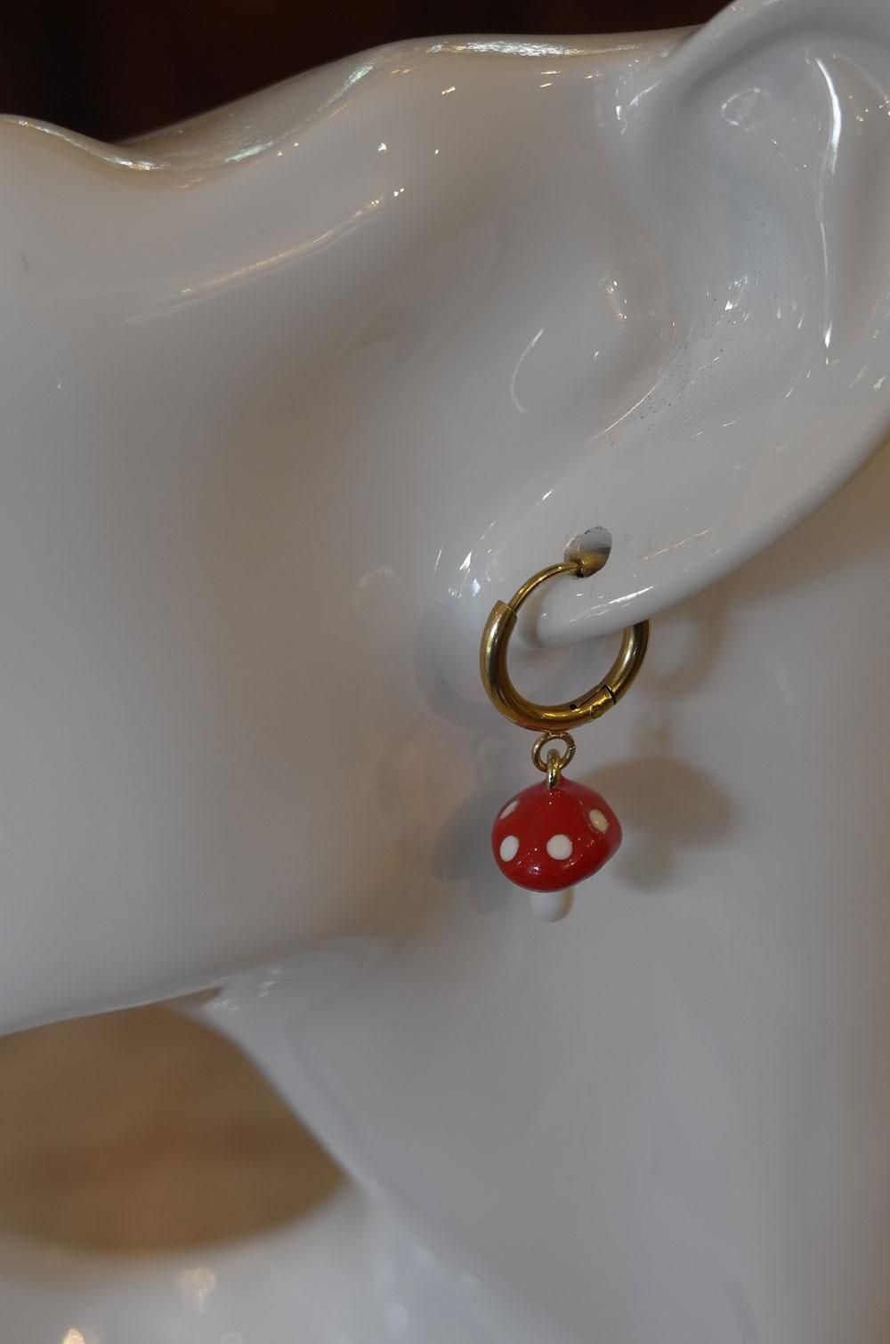 【フランス新品アクセサリーレディース】ピアス 毒キノコ 赤白エナメル スウィング モダンファッション パリ
