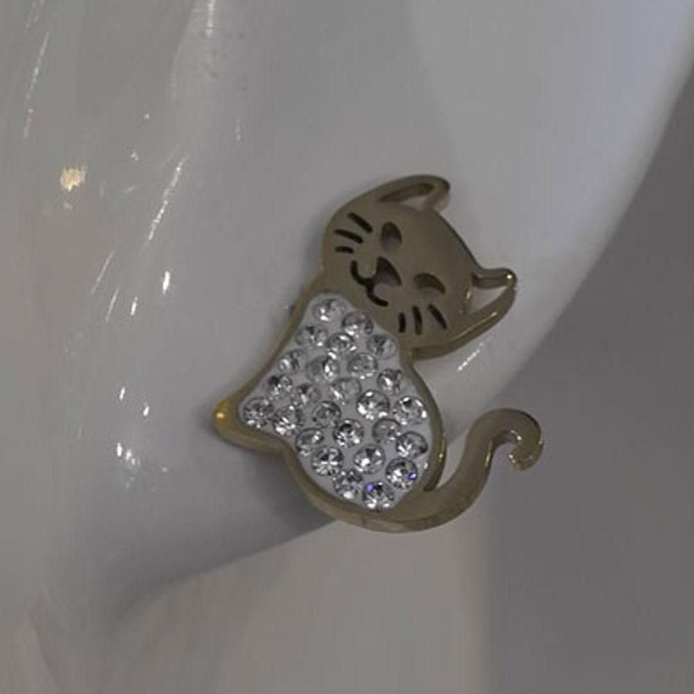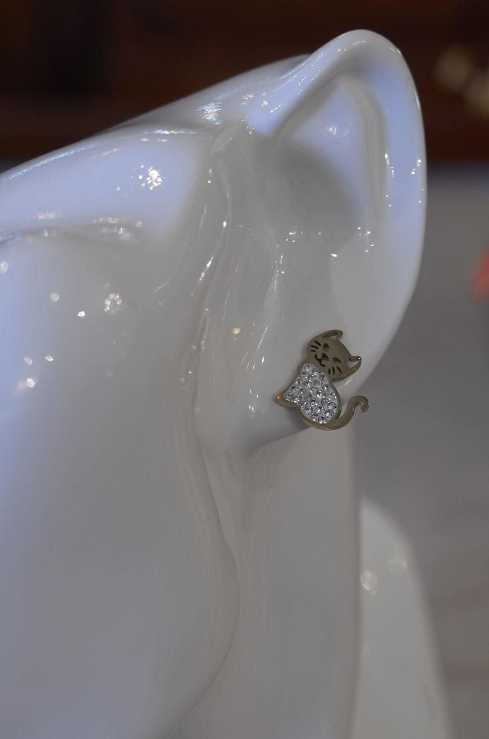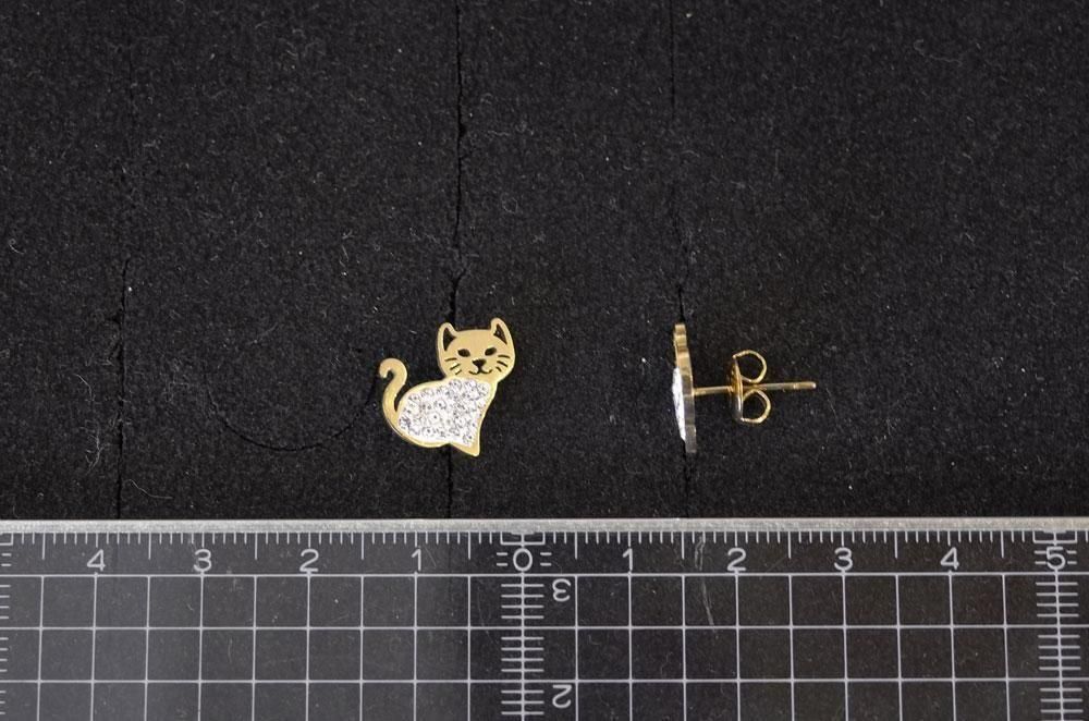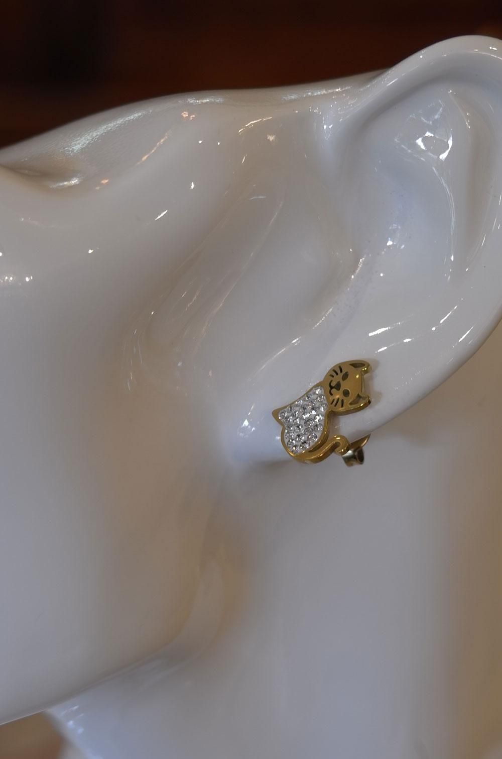 【フランス新品アクセサリーレディース】ピアス 猫ネコ キラキラ スタッド モダンファッション パリ