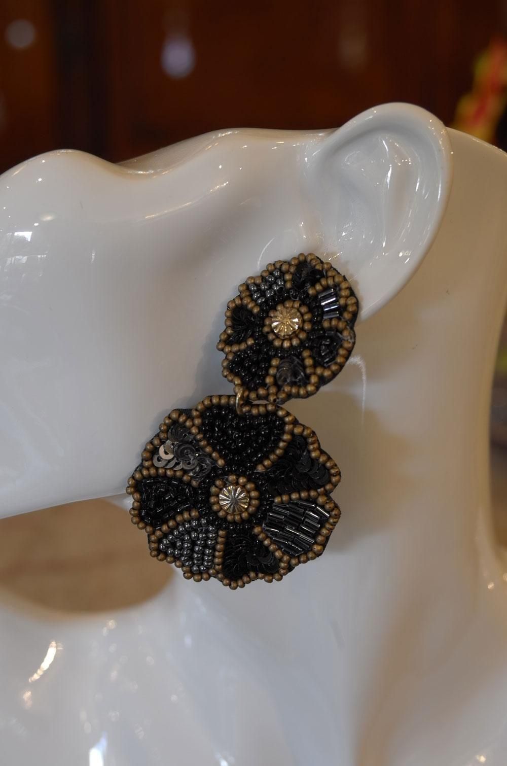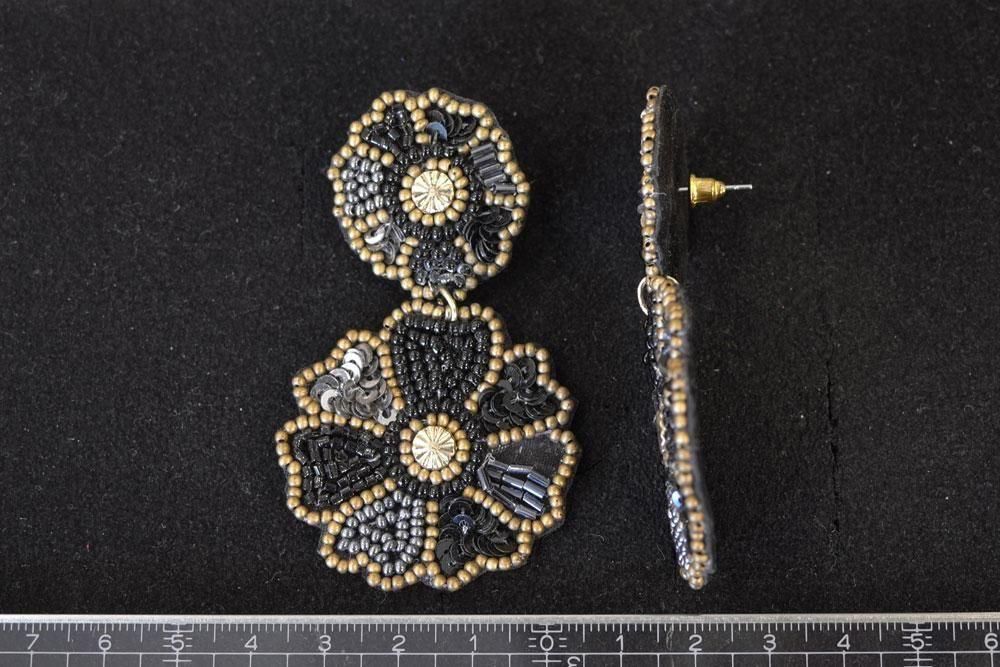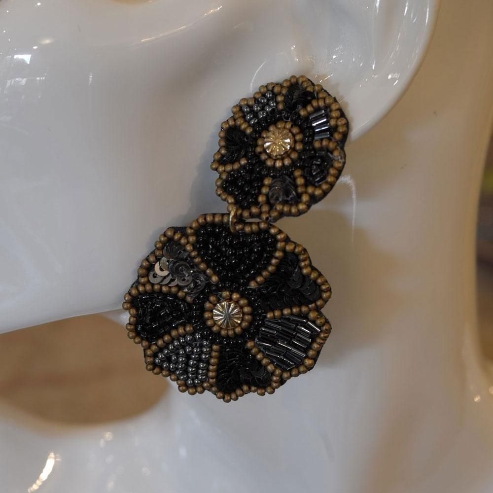 【フランス新品アクセサリーレディース】ピアス 大花 ビーズ 紺金ゴールド スタッド モダンファッション パリ