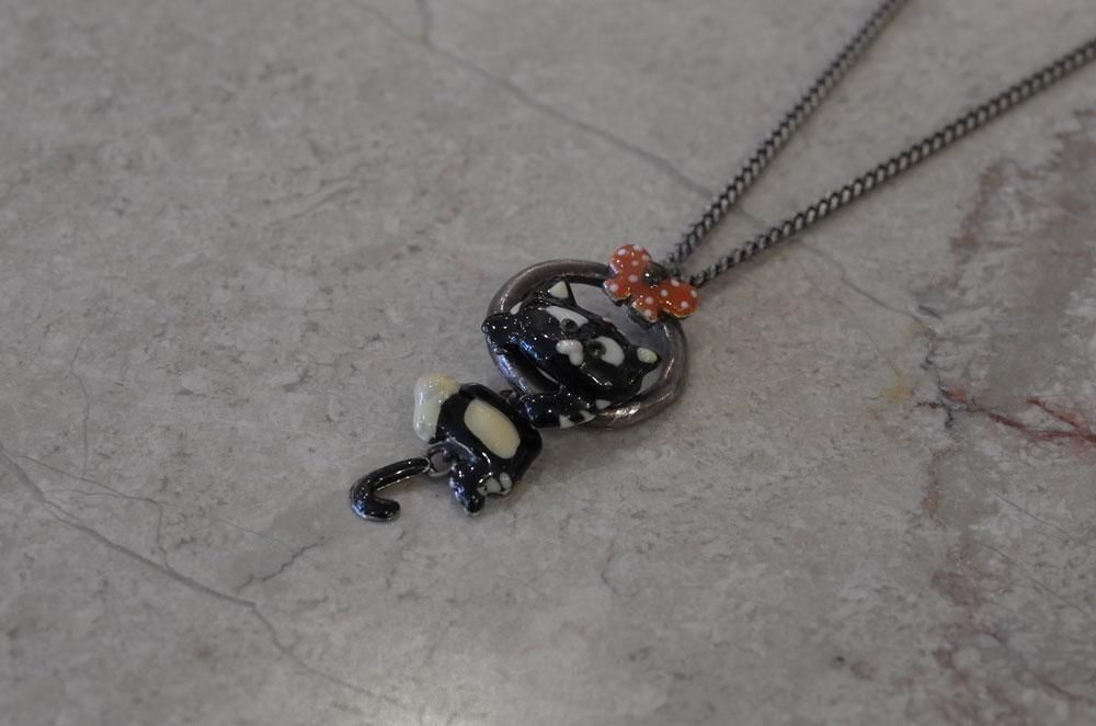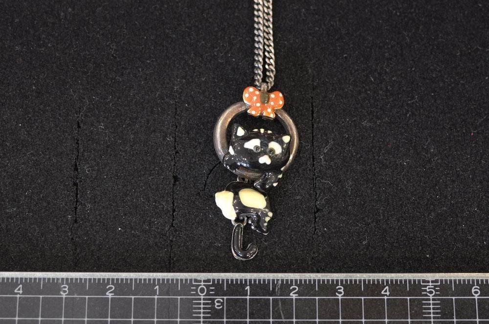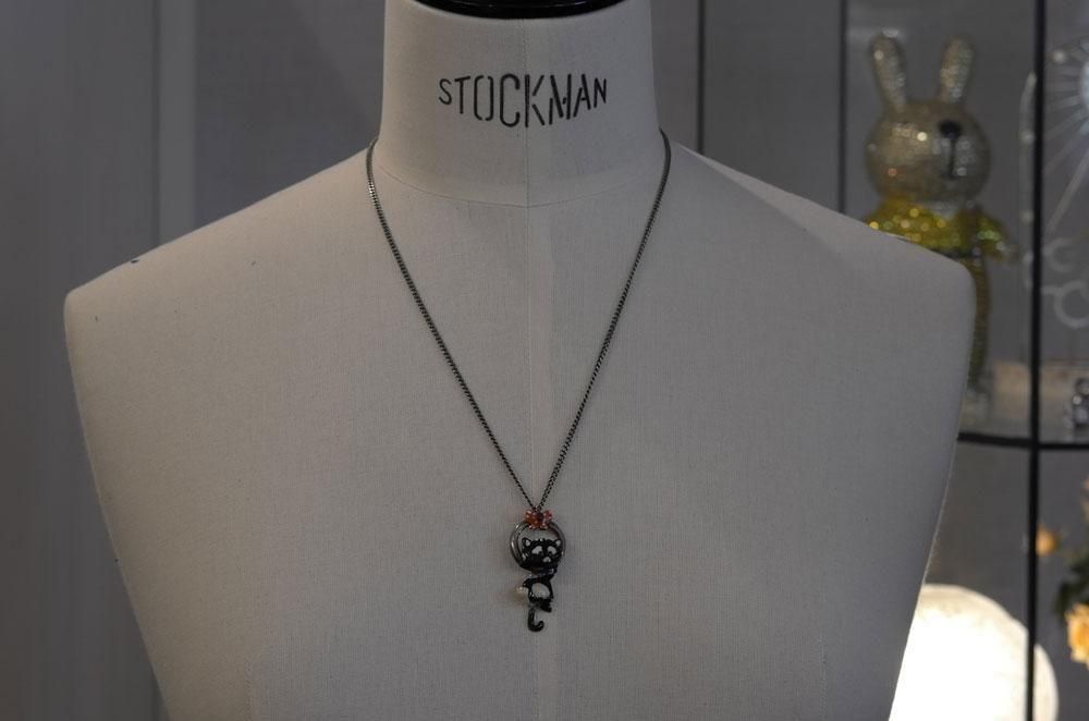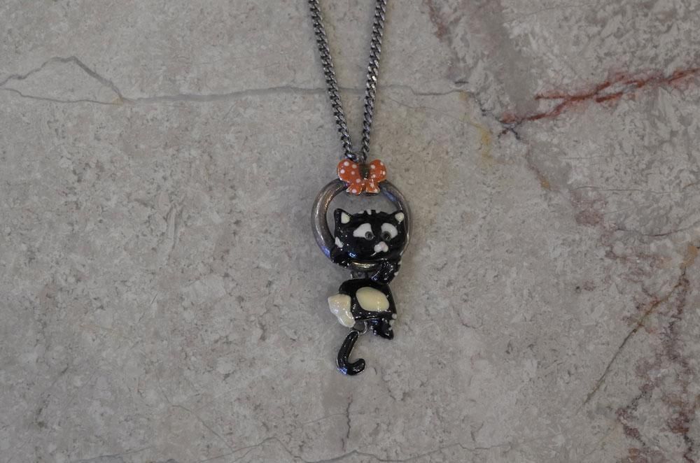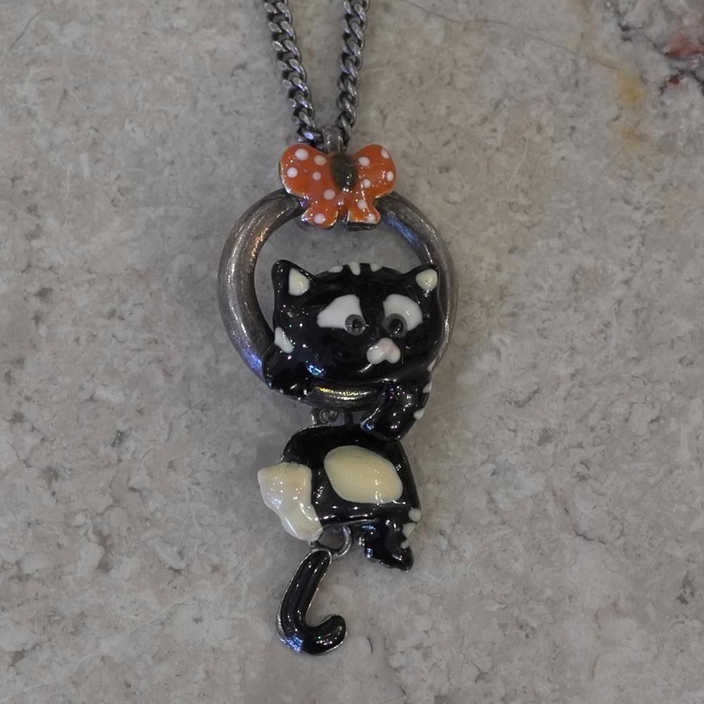 【フランス新品アクセサリーレディース】ネックレス ペンダントトップ 黒猫 エナメル 作家もの ファッション パリ