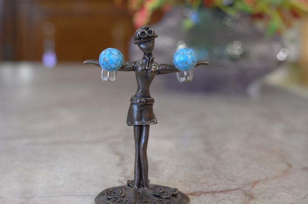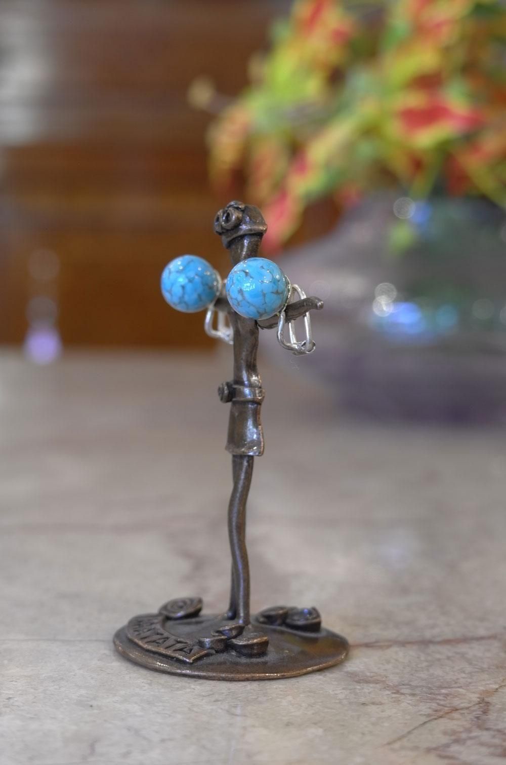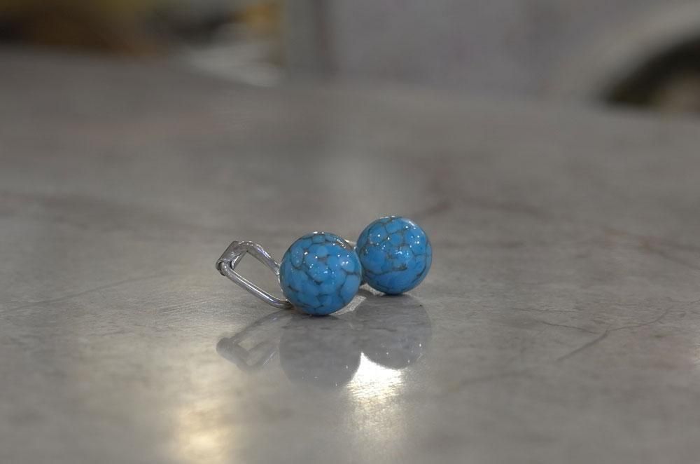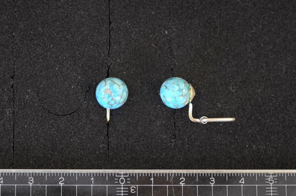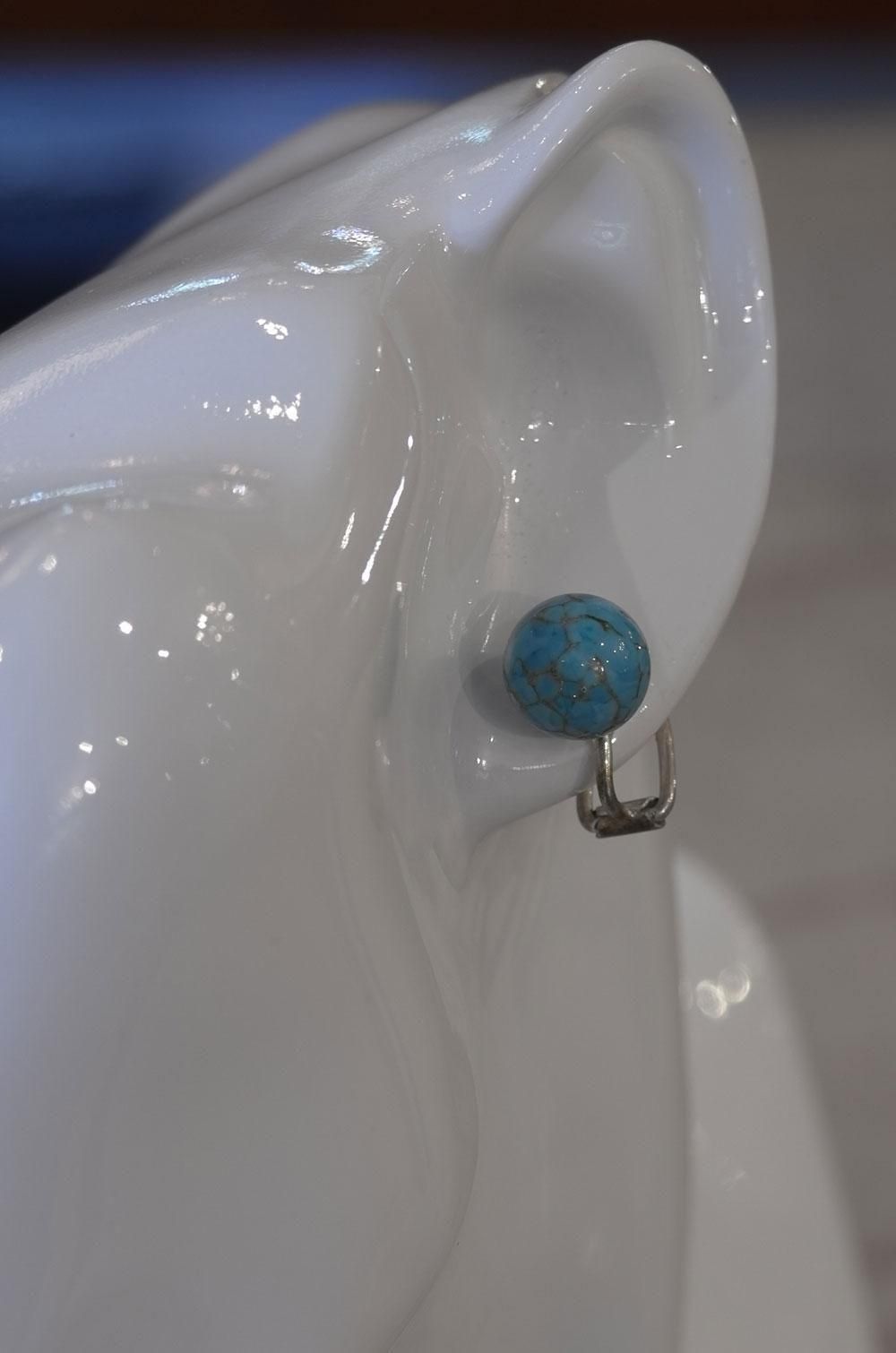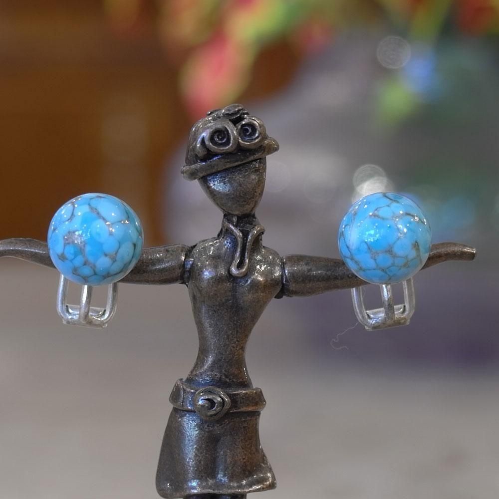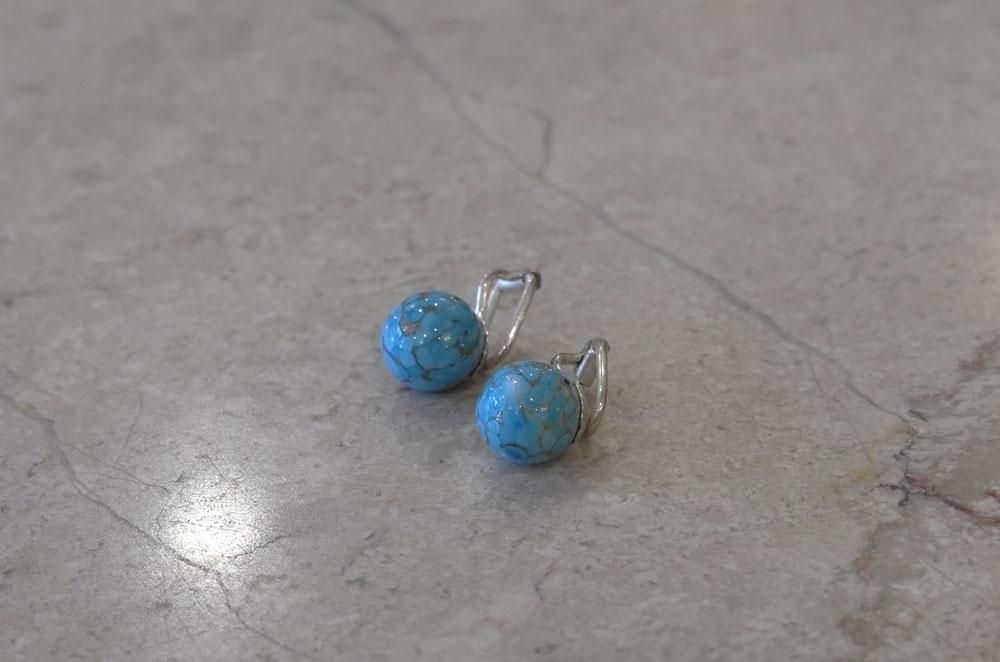 【フランスヴィンテージアクセサリーレディース】イヤリング クリップ 丸球トルコ石 ターコイズ 一点もの パリ