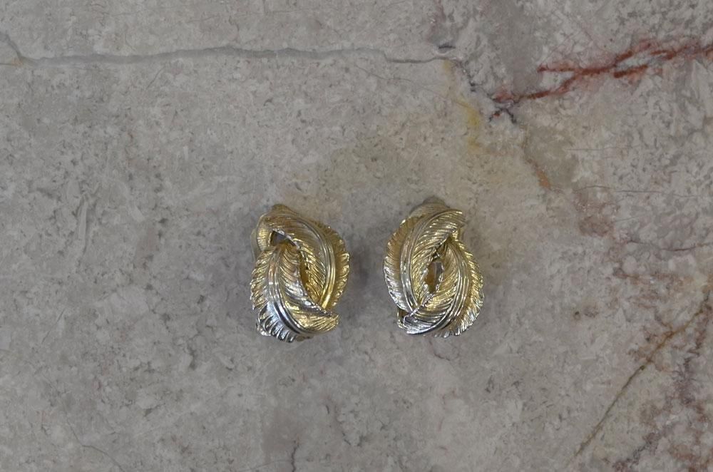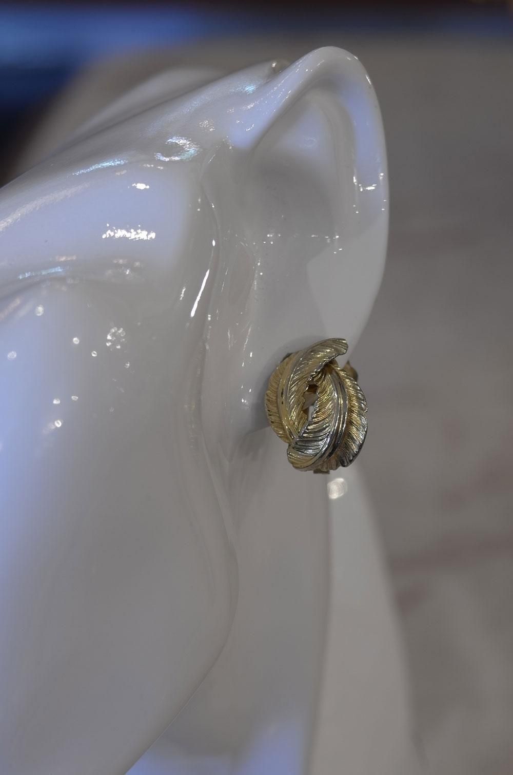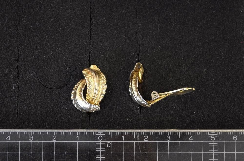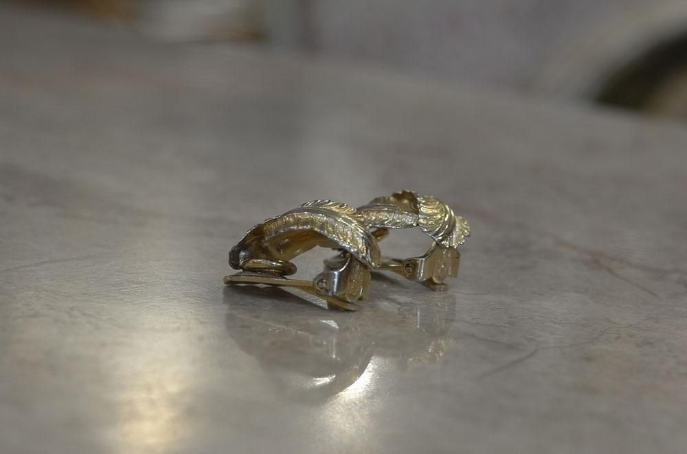 【フランスヴィンテージアクセサリーレディース】イヤリング クリップ 植物葉模様 金ゴールド 一点もの パリ