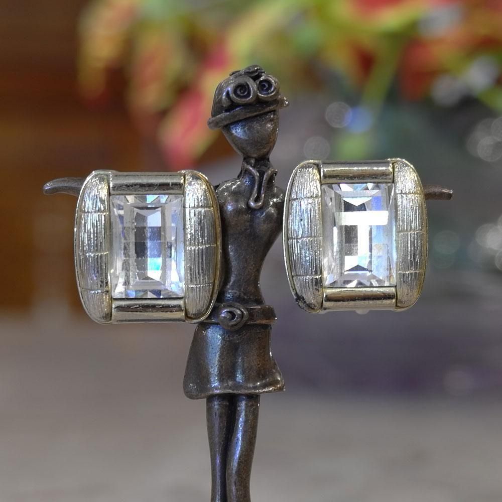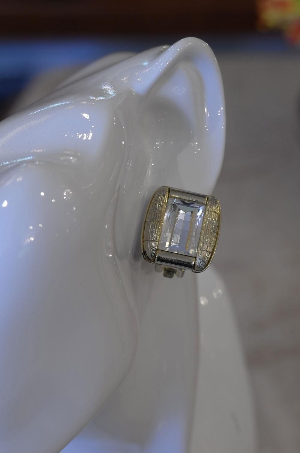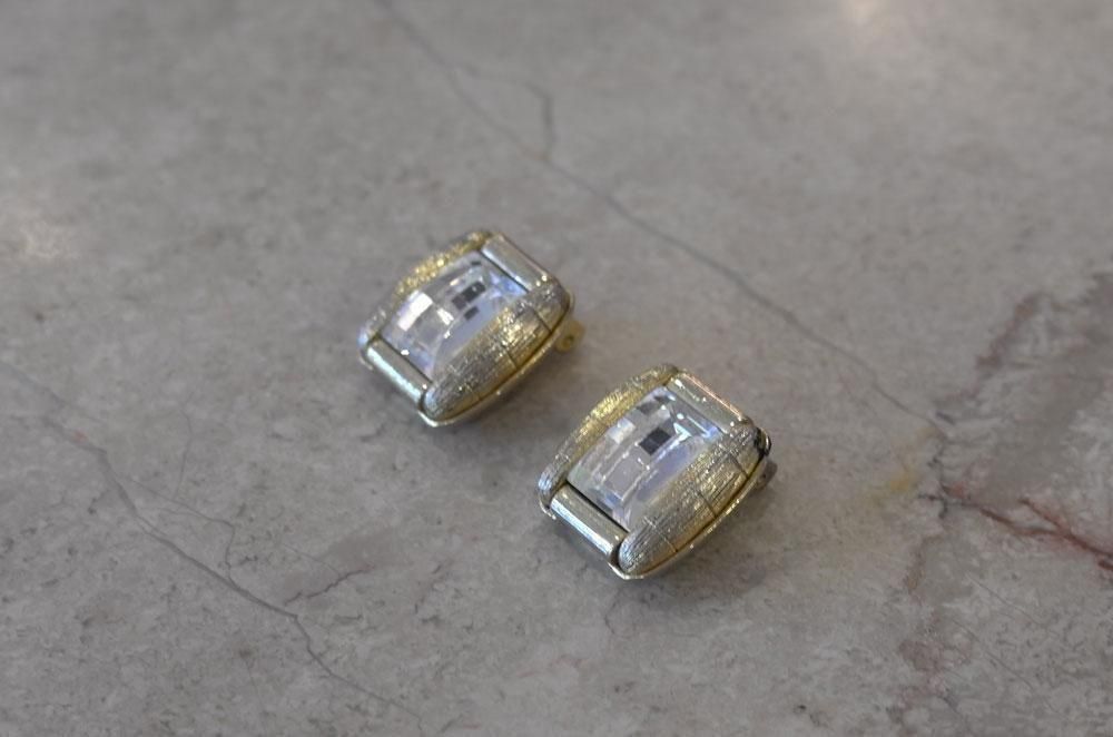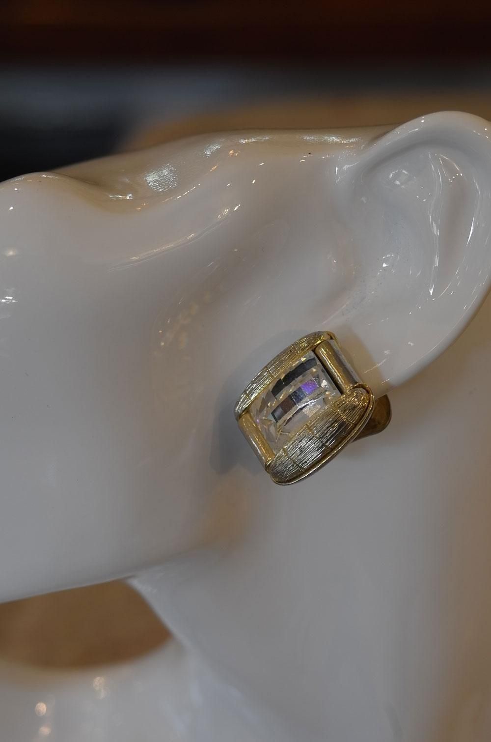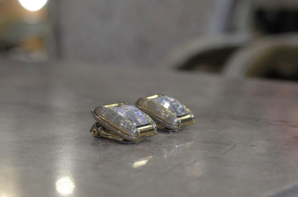 【フランスヴィンテージアクセサリーレディース】イヤリング クリップ 縦長長方形 透明ガラス 金ゴールド 一点もの パリ