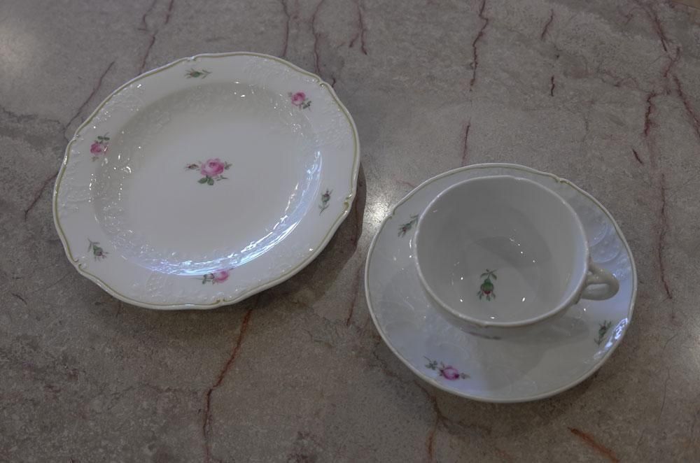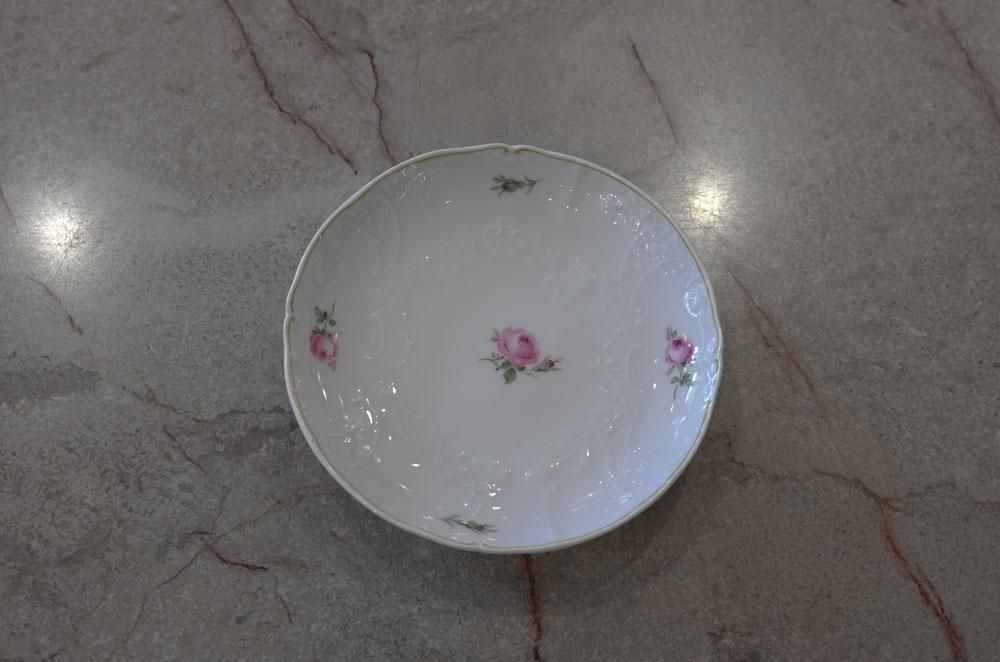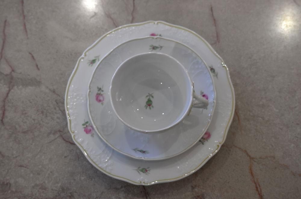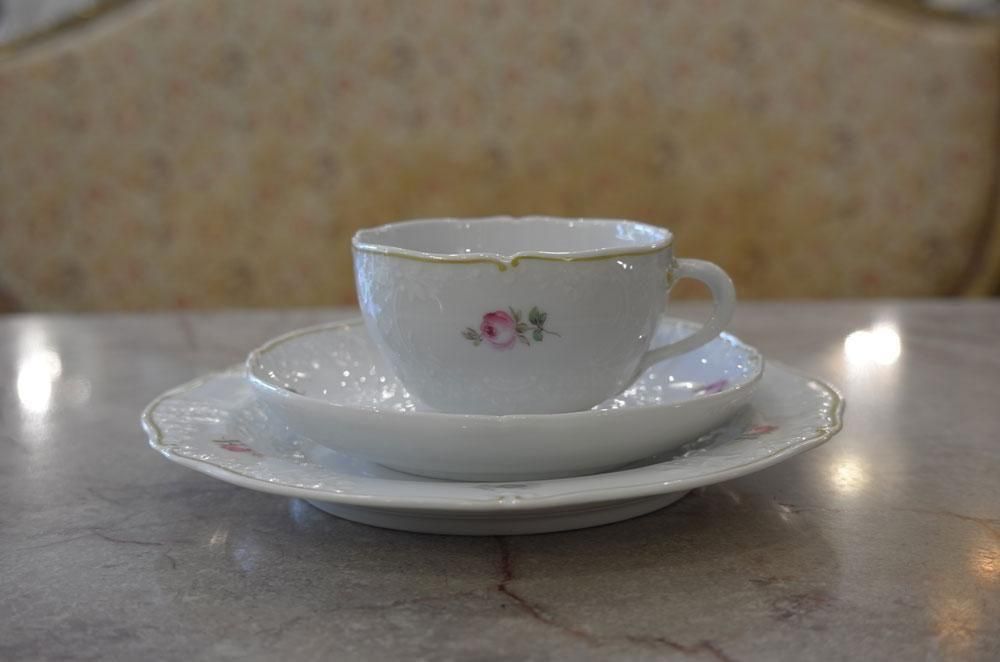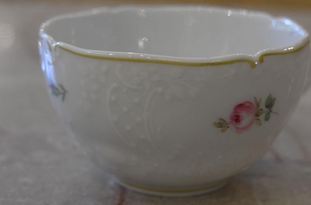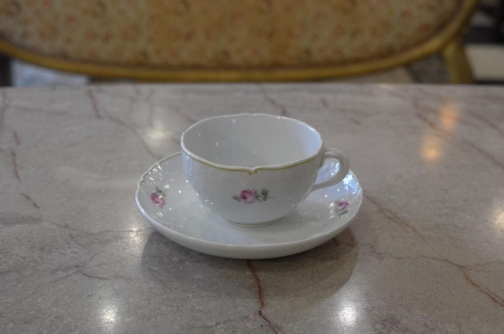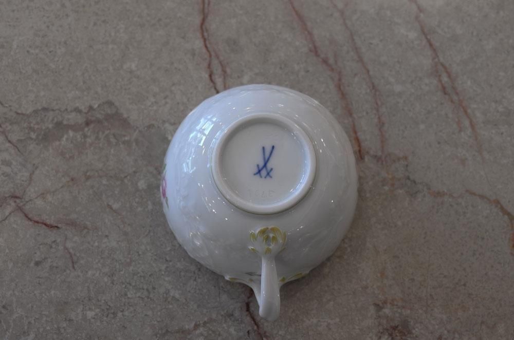 マイセン・ホワイトに小さなローズが”華奢”に可愛らしく描かれています。